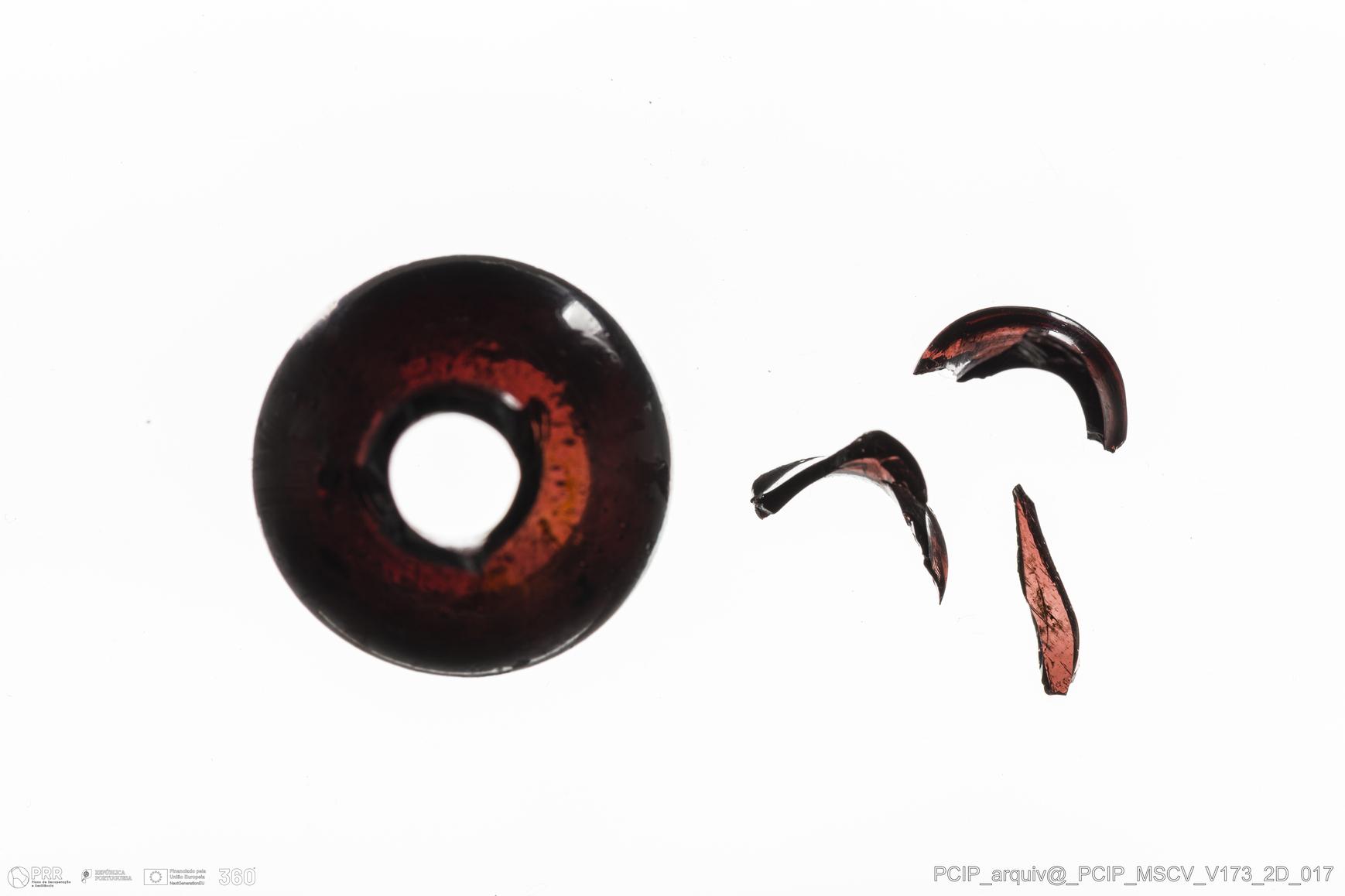 Matéria/Técnica: Vidro; Cronologia: Século XVII; Autoria: Desconhecida; Dimensões: Diâmetro bordo: 16mm.