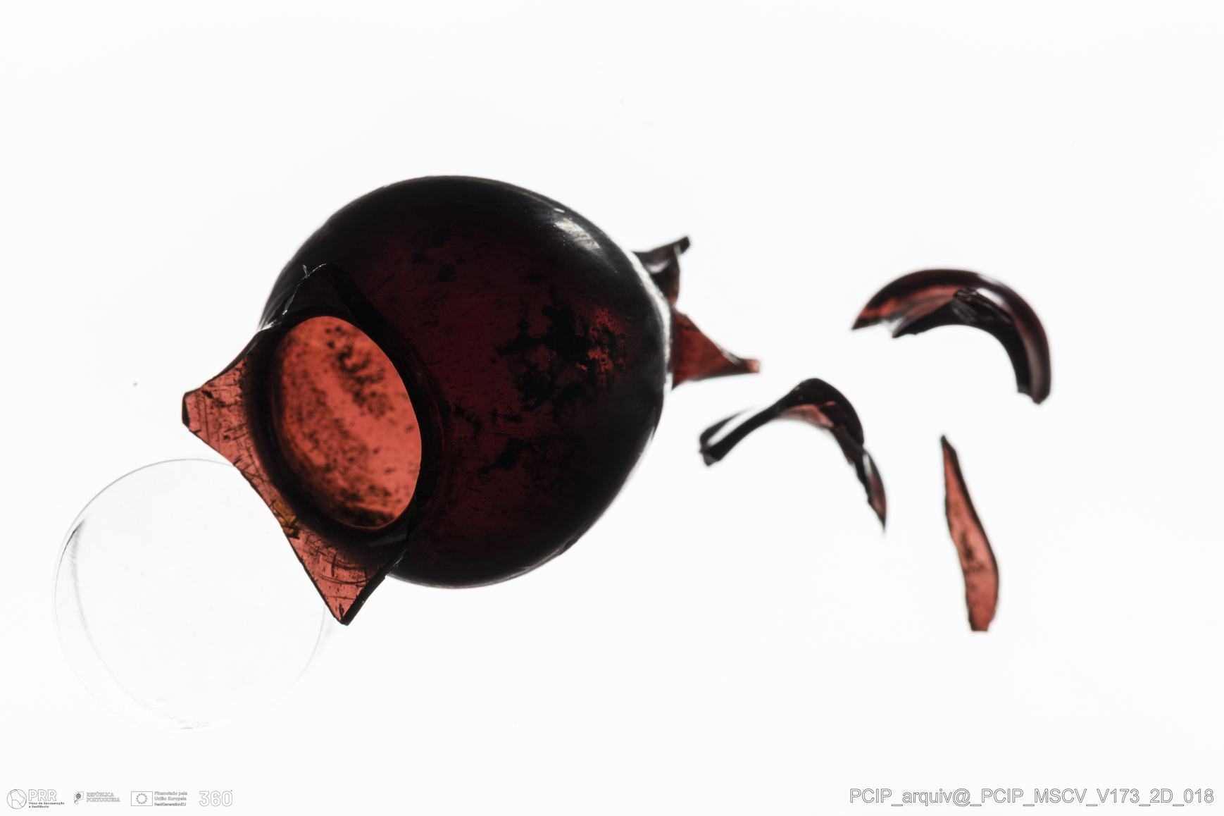 Matéria/Técnica: Vidro; Cronologia: Século XVII; Autoria: Desconhecida; Dimensões: Diâmetro bordo: 16mm.