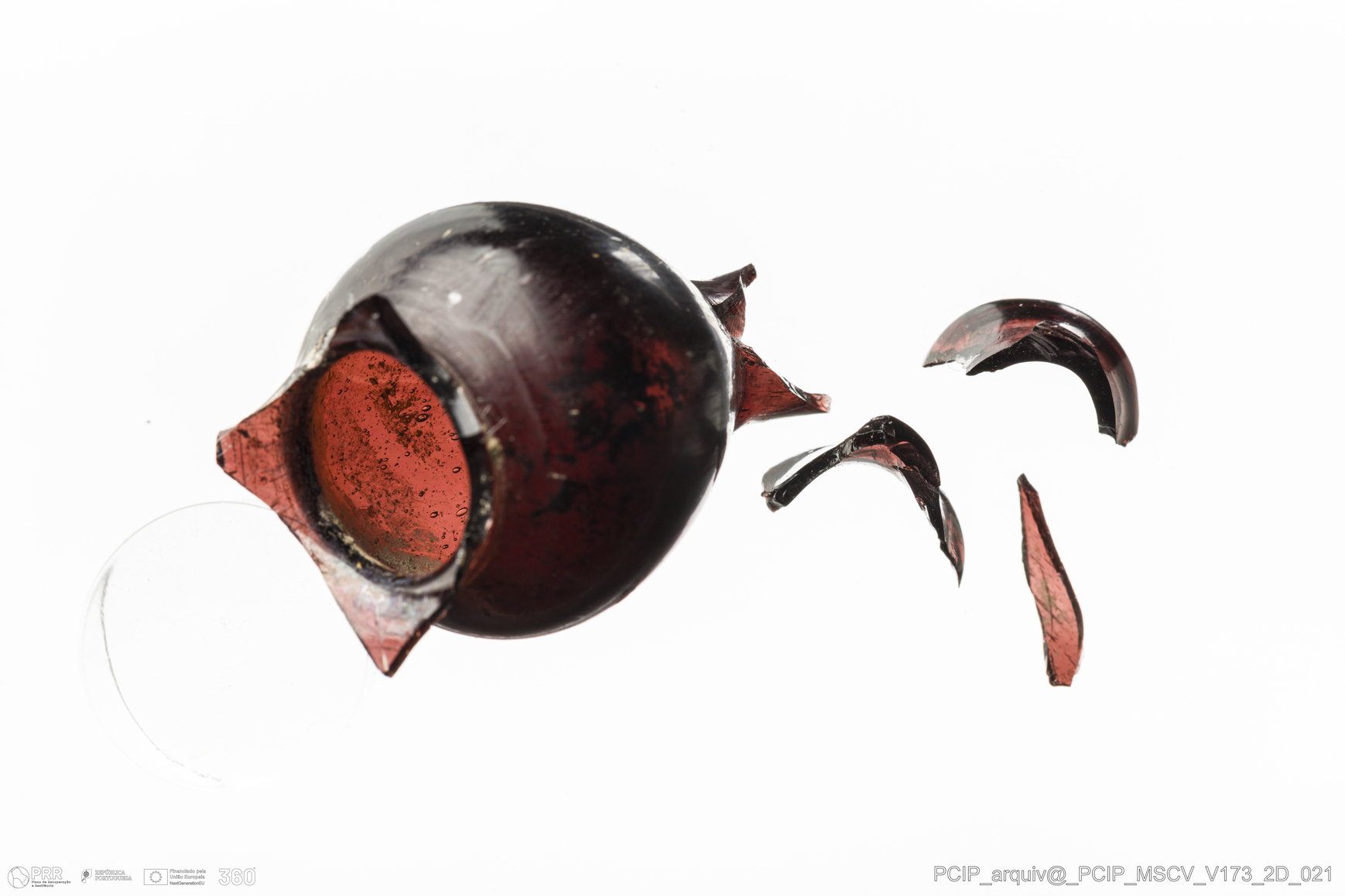 Matéria/Técnica: Vidro; Cronologia: Século XVII; Autoria: Desconhecida; Dimensões: Diâmetro bordo: 16mm.