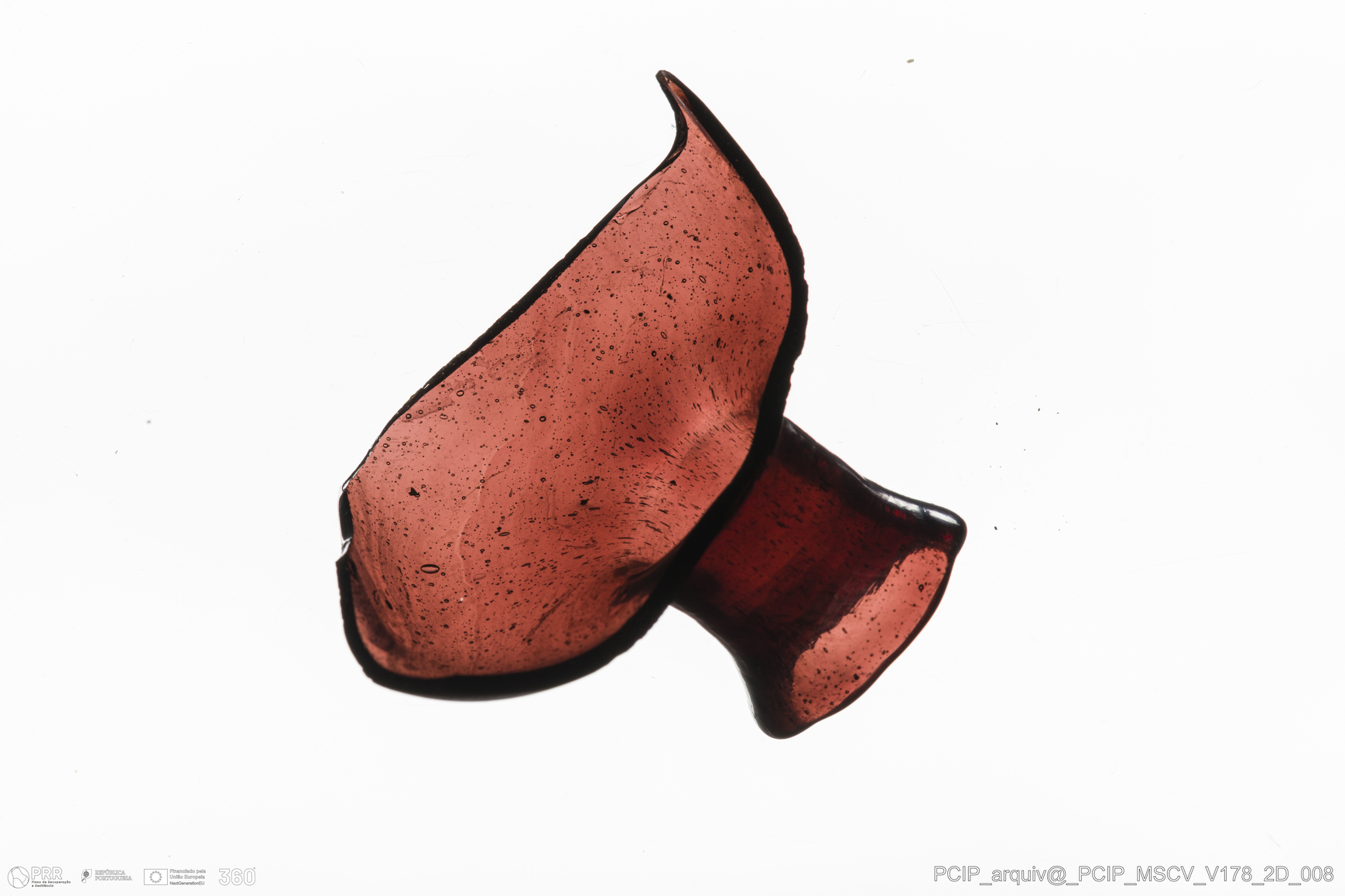 Matéria/Técnica: Vidro; Cronologia: Século XVII; Autoria: Desconhecida; Dimensões: Diâmetro Bordo: 23mm.