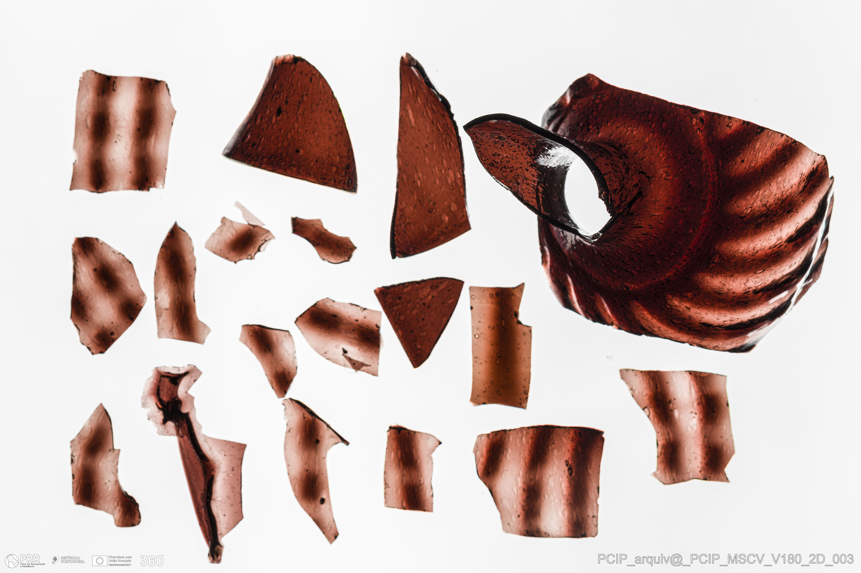 Matéria/Técnica: Vidro; Cronologia: Século XVII; Autoria: Desconhecida; Dimensões: Diâmetro bordo: 29mm.