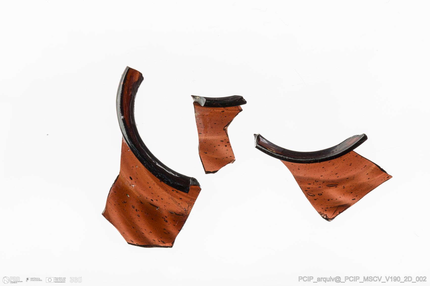 Matéria/Técnica: Vidro; Cronologia: Século XVII; Autoria: Desconhecida; Dimensões: Diâmetro bordo: 43mm.