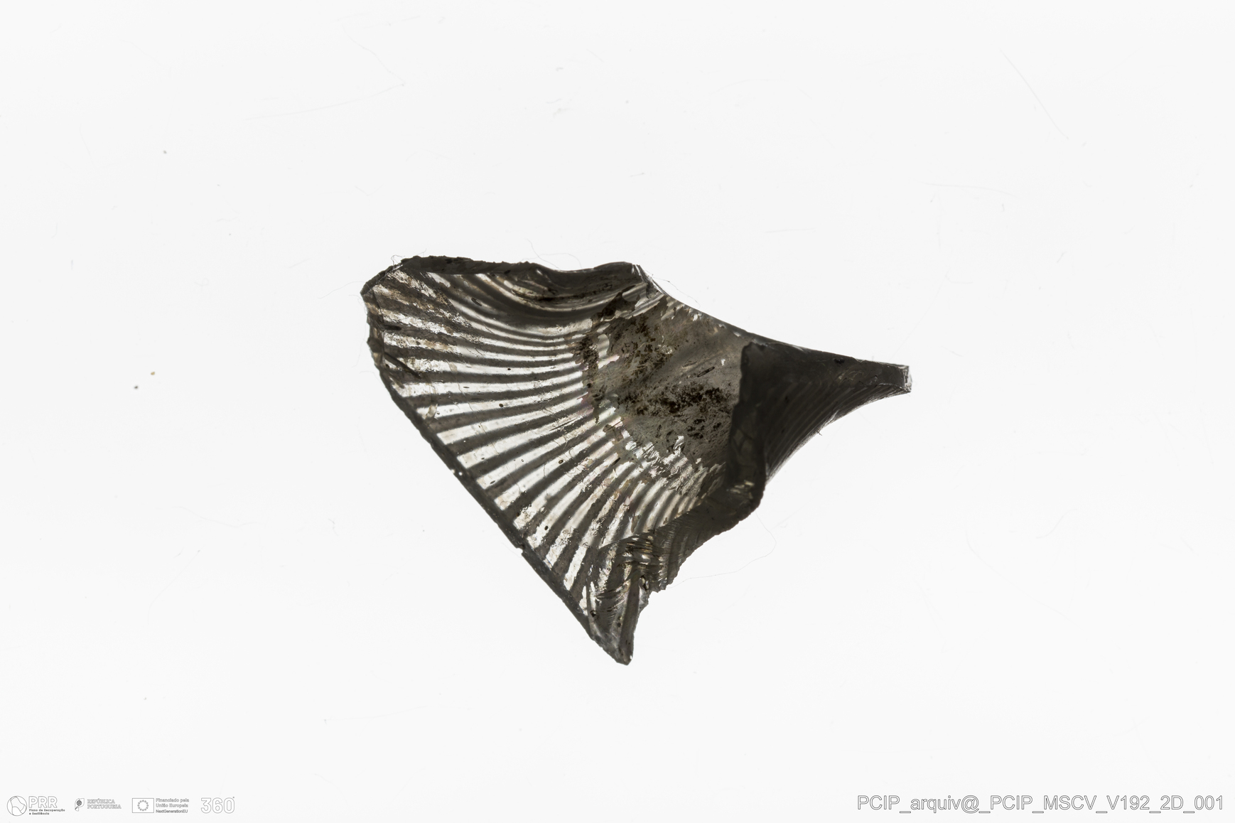 Matéria/Técnica: Vidro; Cronologia: Século XVII; Autoria: Desconhecida; Dimensões: Largura: 21mm; Altura: 23mm.