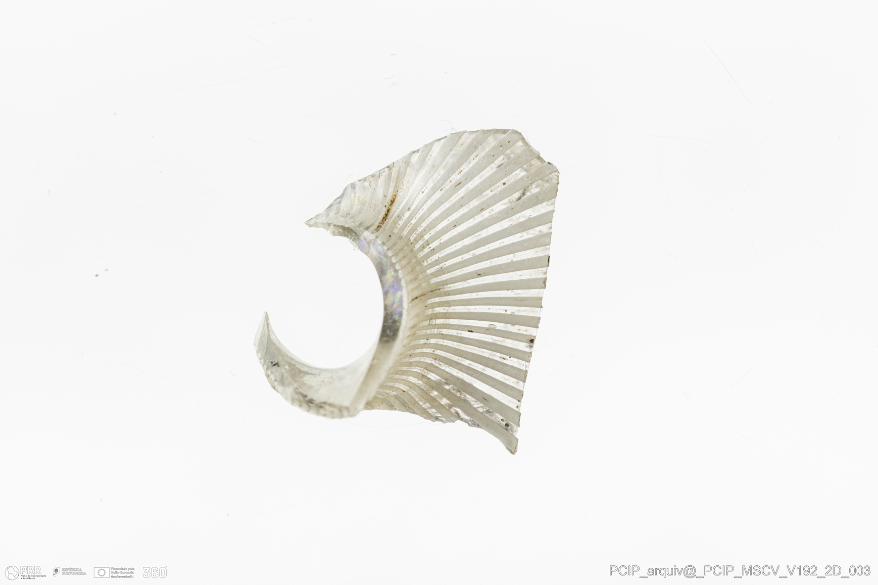 Matéria/Técnica: Vidro; Cronologia: Século XVII; Autoria: Desconhecida; Dimensões: Largura: 21mm; Altura: 23mm.