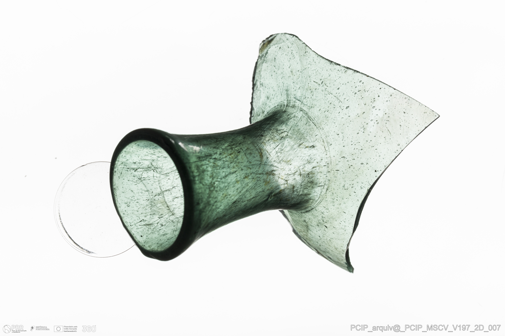 Matéria/Técnica: Vidro; Cronologia: Século XVII; Autoria: Desconhecida; Dimensões: Diâmetro bordo: 27mm.