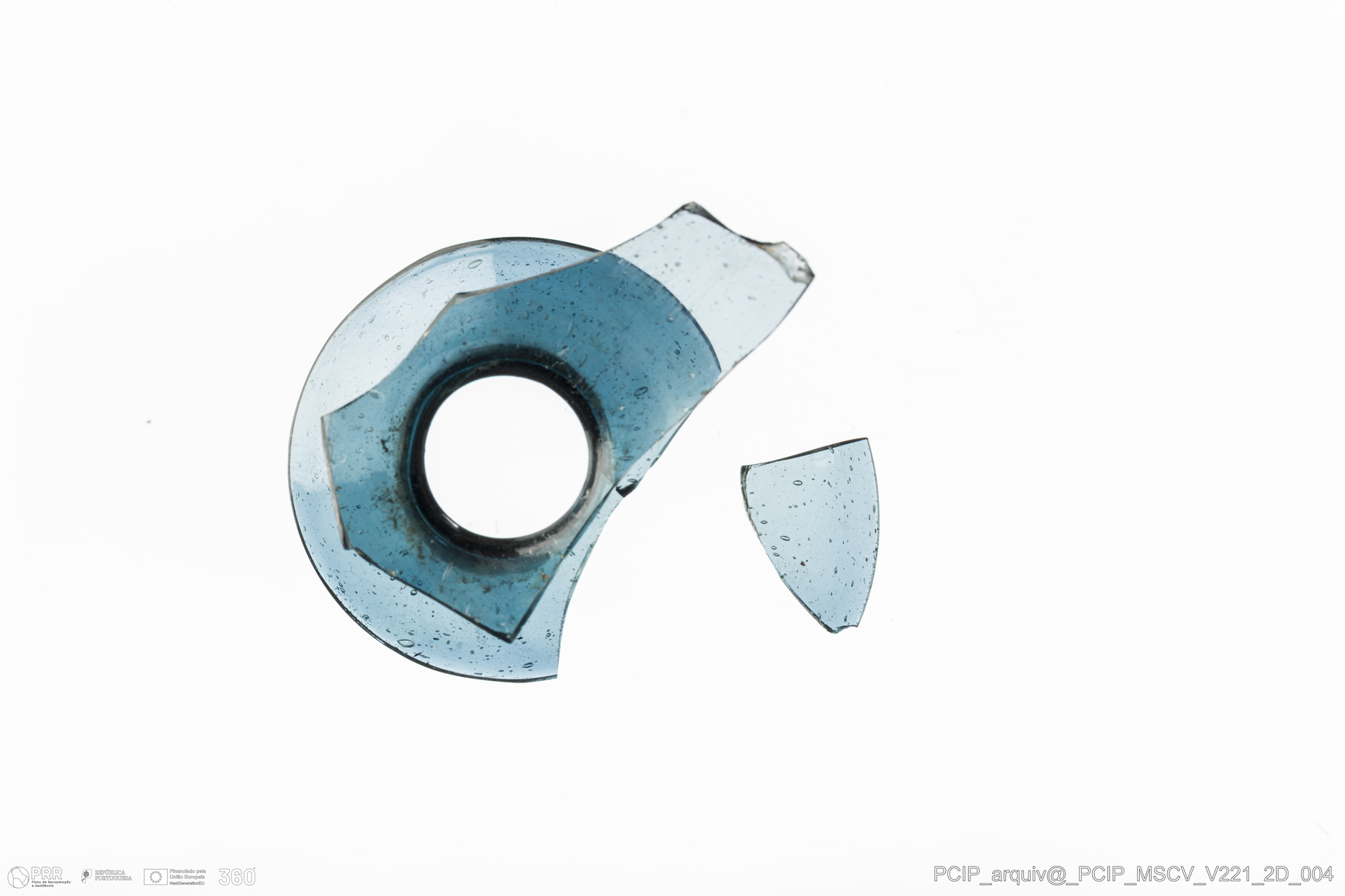 Matéria/Técnica: Vidro; Cronologia: Século XVII; Autoria: Desconhecida; Dimensões: Diâmetro bordo: 35mm.