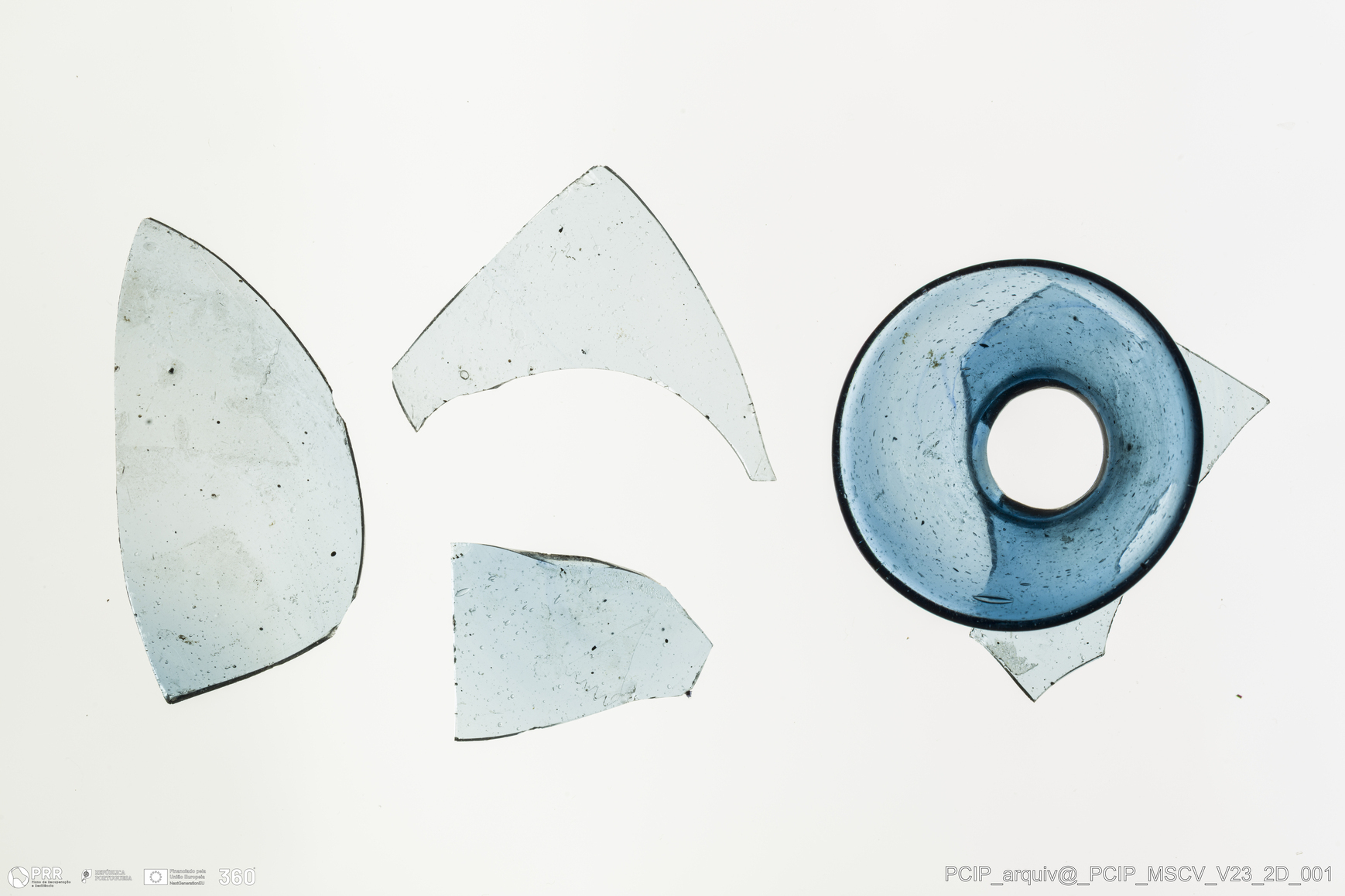 Matéria/Técnica: Vidro; Cronologia: Século XVII; Autoria: Desconhecida; Dimensões: Diâmetro bordo: 37mm.