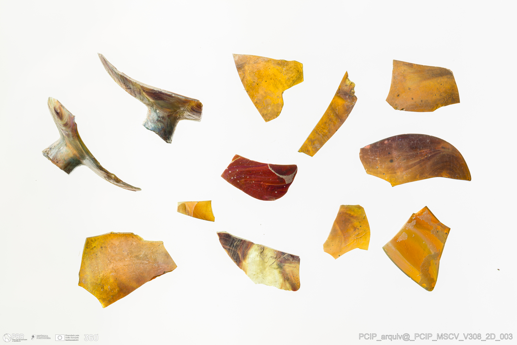 Matéria/Técnica: Vidro; Cronologia: Século XVII; Autoria: Desconhecida; Dimensões: Diâmetro bordo: 9mm.