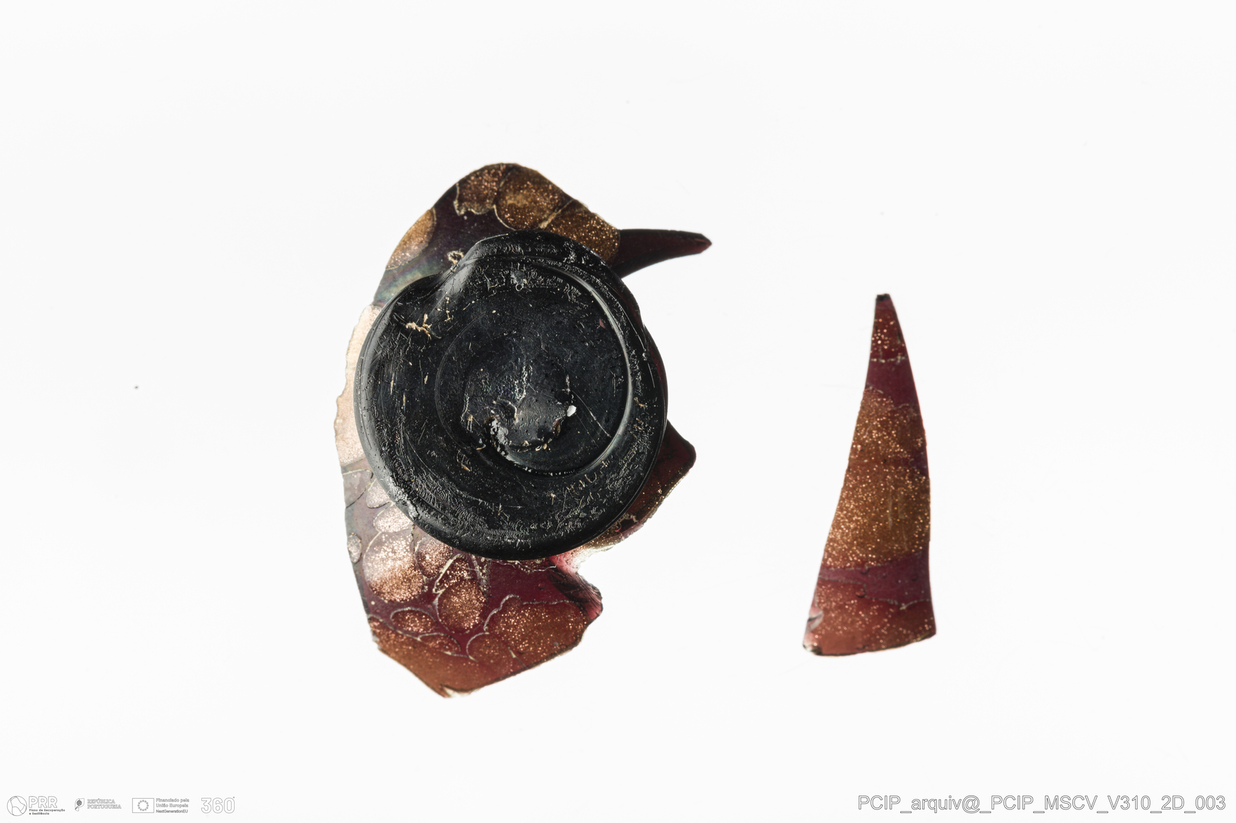 Matéria/Técnica: Vidro; Cronologia: Século XVII; Autoria: Desconhecida; Dimensões: Diâmetro da base: 17mm; Altura: 14mm.
