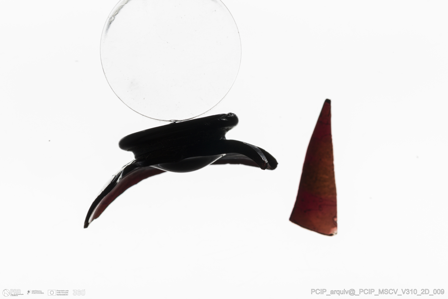 Matéria/Técnica: Vidro; Cronologia: Século XVII; Autoria: Desconhecida; Dimensões: Diâmetro da base: 17mm; Altura: 14mm.