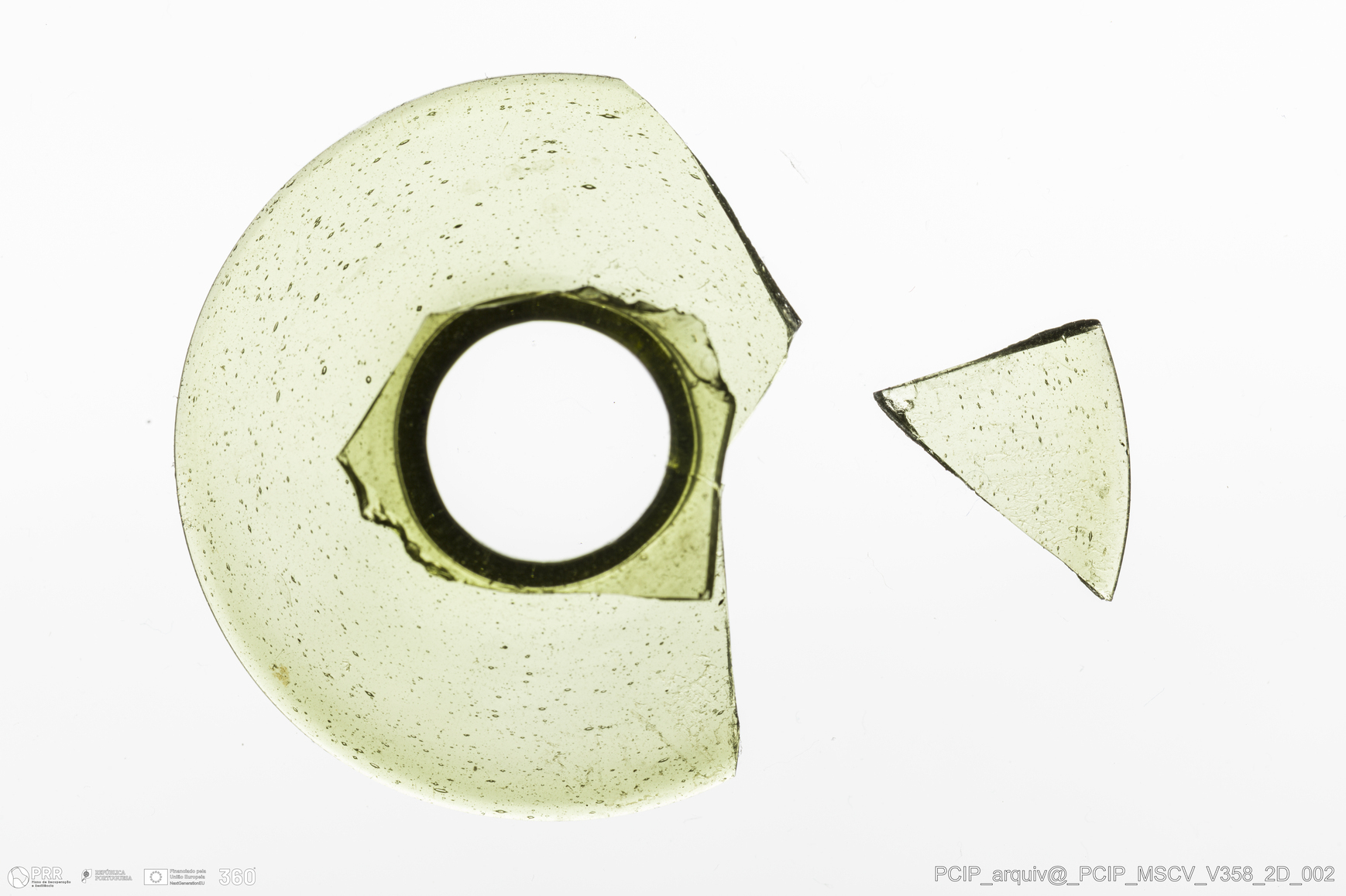 Matéria/Técnica: Vidro; Cronologia: Século XVII; Autoria: Desconhecida; Dimensões: Diâmetro bordo: 47mm.