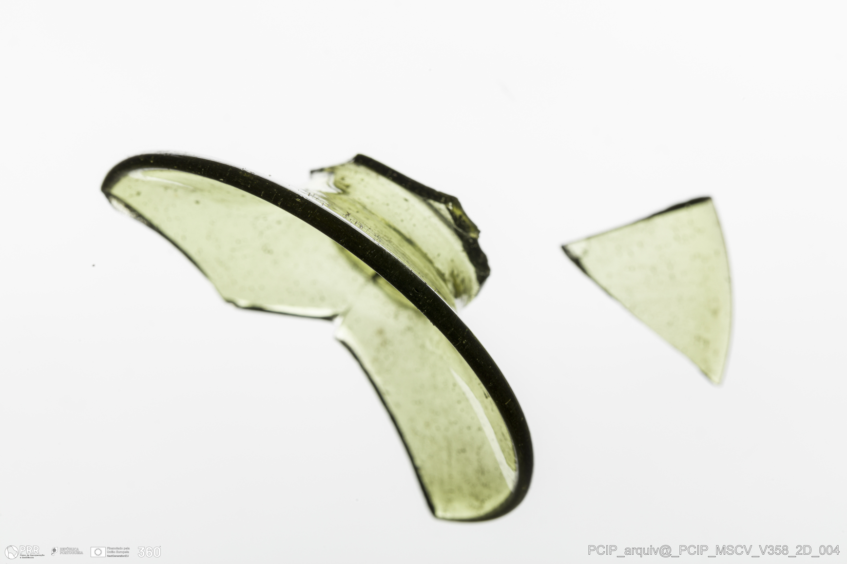 Matéria/Técnica: Vidro; Cronologia: Século XVII; Autoria: Desconhecida; Dimensões: Diâmetro bordo: 47mm.