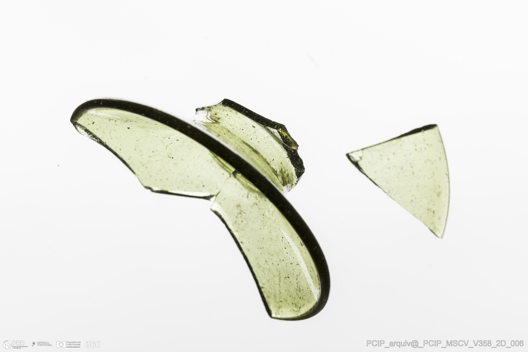 Matéria/Técnica: Vidro; Cronologia: Século XVII; Autoria: Desconhecida; Dimensões: Diâmetro bordo: 47mm.