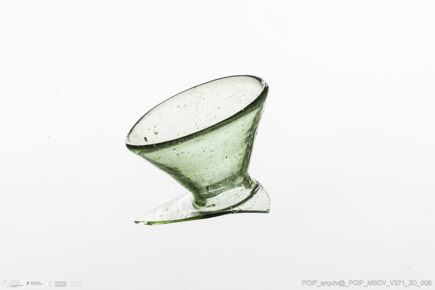 Matéria/Técnica: Vidro; Cronologia: Século XVII; Autoria: Desconhecida; Dimensões: Diâmetro bordo: 38mm.