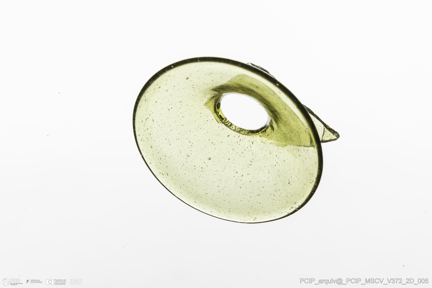 Matéria/Técnica: Vidro; Cronologia: Século XVII; Autoria: Desconhecida; Dimensões: Diâmetro bordo: 52mm.