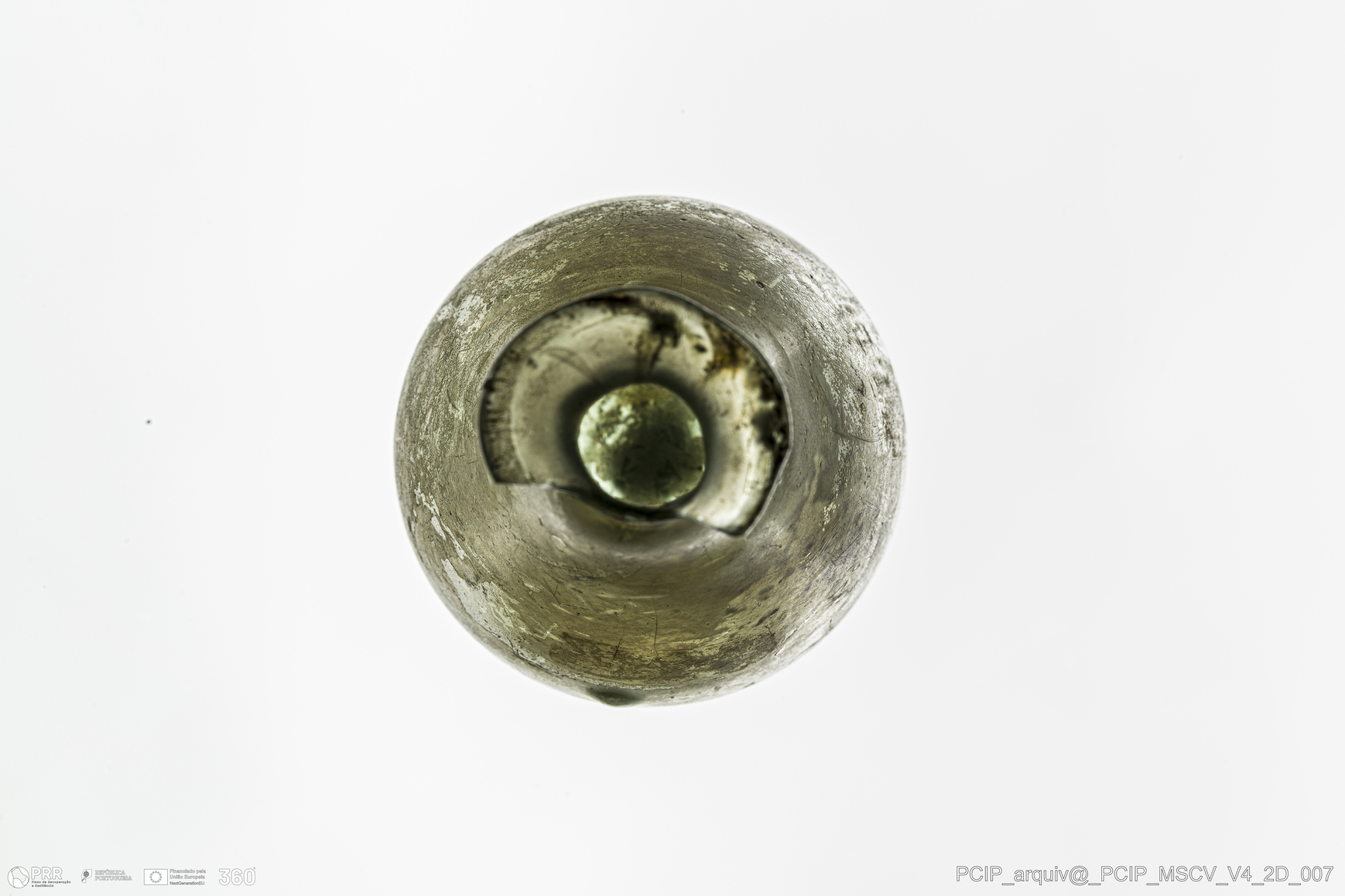 Matéria/Técnica: Vidro; Cronologia: Século XVII; Autoria: Desconhecida; Dimensões: Diâmetro bordo: 24mm; Diâmetro base: 24mm; Altura: 65mm.