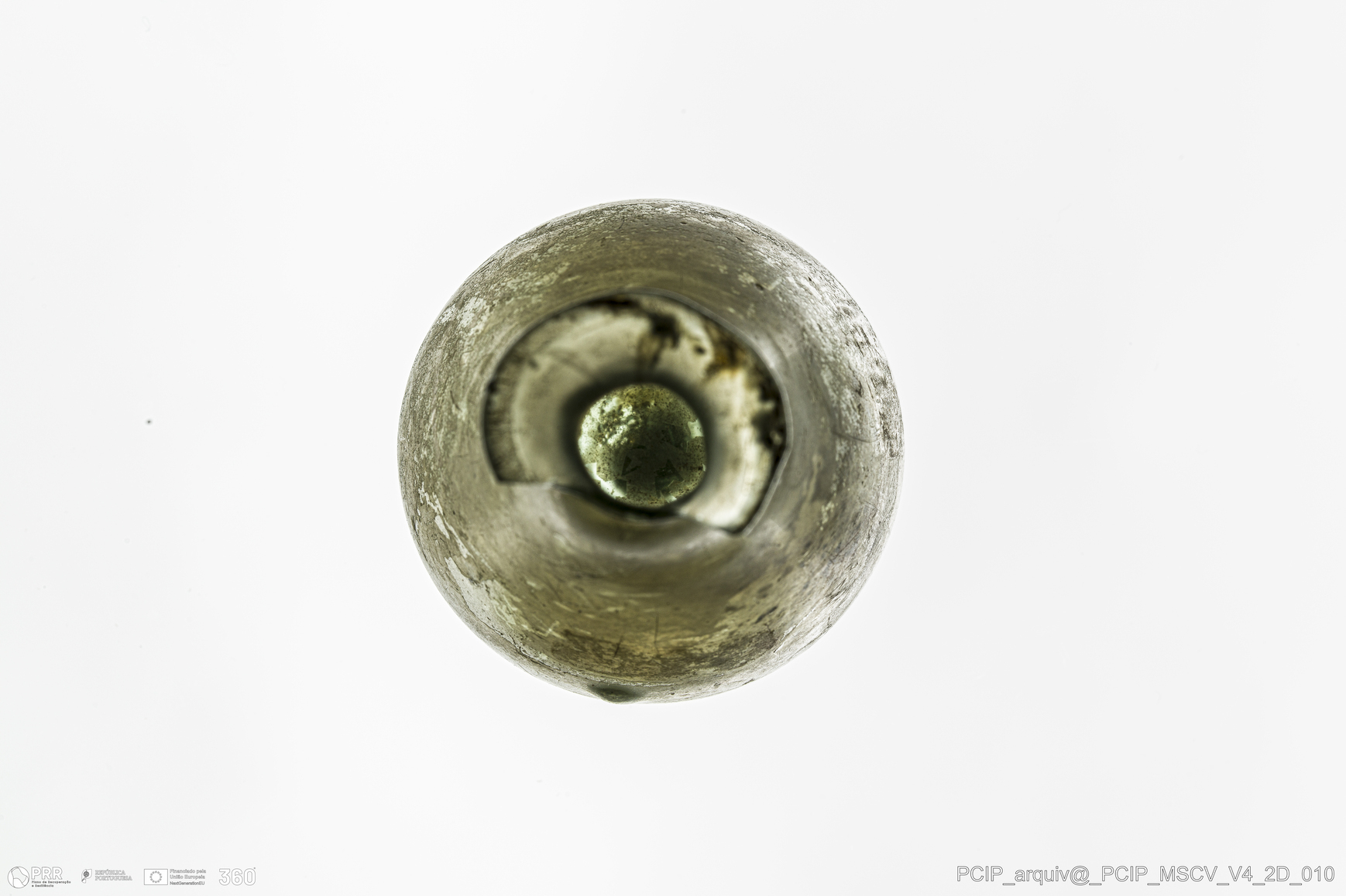 Matéria/Técnica: Vidro; Cronologia: Século XVII; Autoria: Desconhecida; Dimensões: Diâmetro bordo: 24mm; Diâmetro base: 24mm; Altura: 65mm.