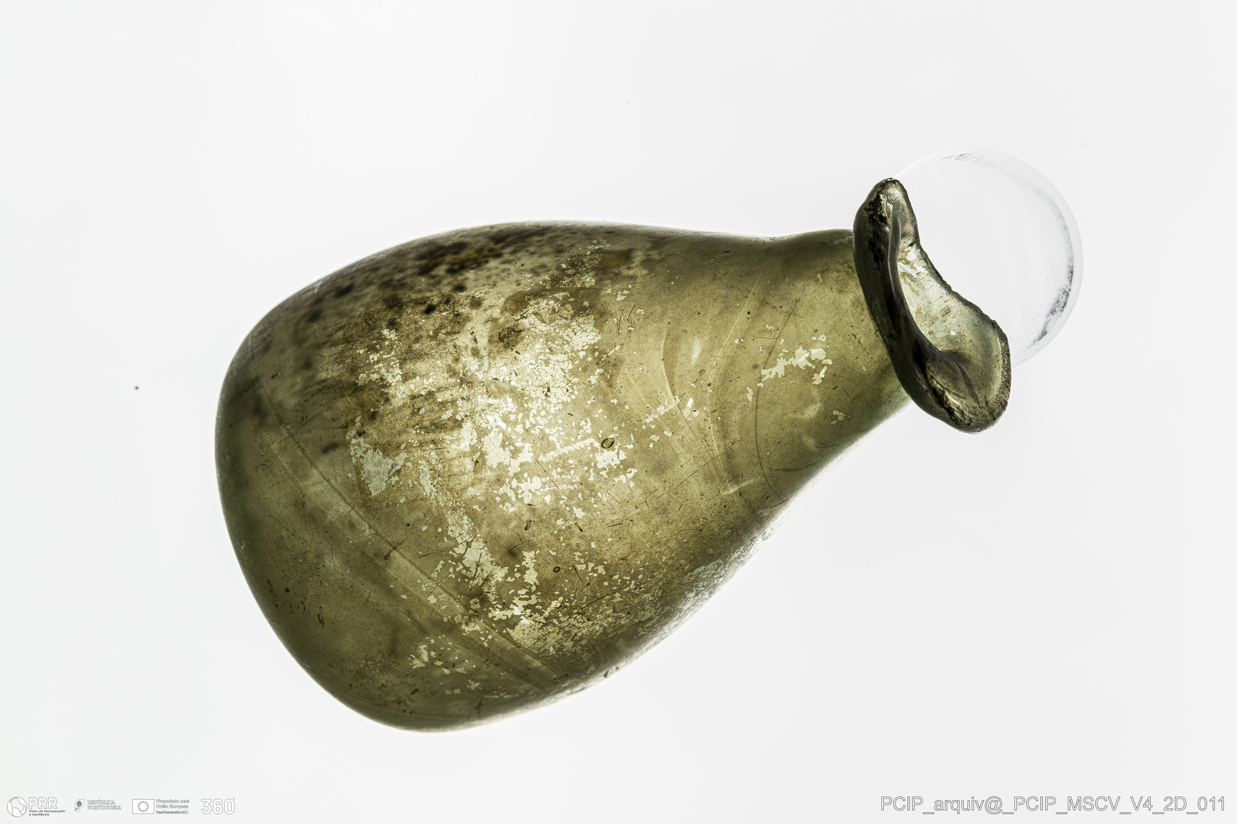 Matéria/Técnica: Vidro; Cronologia: Século XVII; Autoria: Desconhecida; Dimensões: Diâmetro bordo: 24mm; Diâmetro base: 24mm; Altura: 65mm.