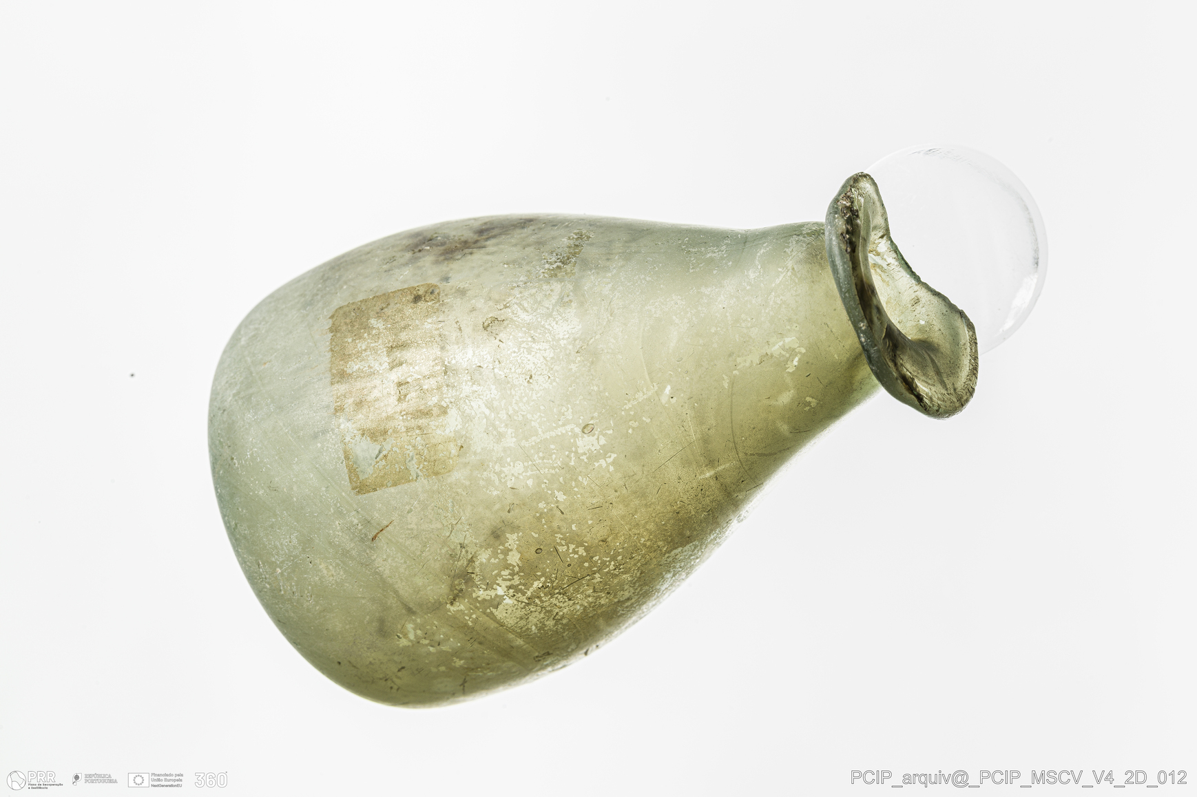 Matéria/Técnica: Vidro; Cronologia: Século XVII; Autoria: Desconhecida; Dimensões: Diâmetro bordo: 24mm; Diâmetro base: 24mm; Altura: 65mm.