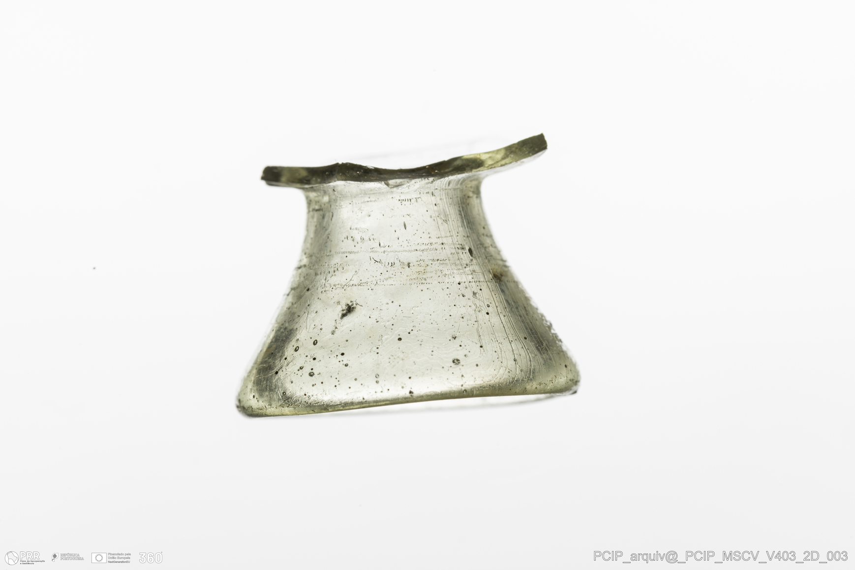 Matéria/Técnica: Vidro; Cronologia: Século XVII; Autoria: Desconhecida; Dimensões: Diâmetro bordo: 21mm.