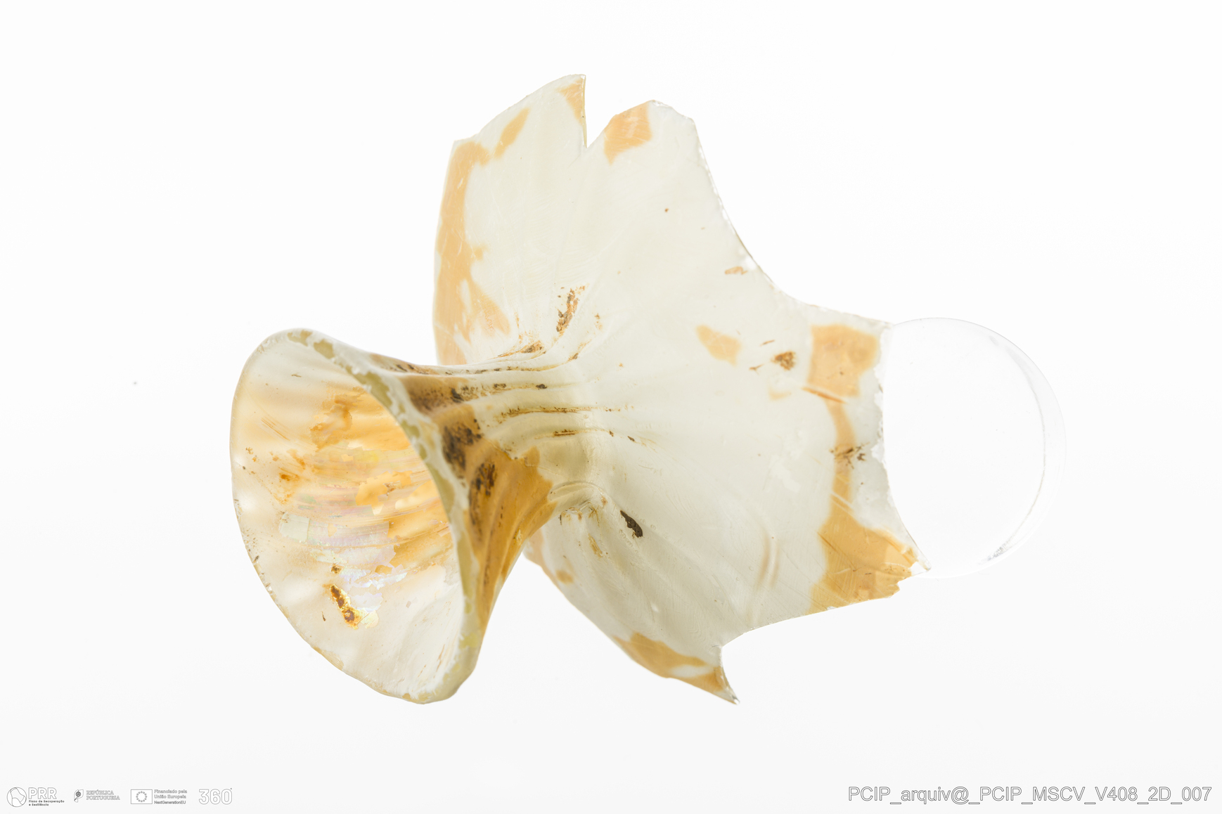 Matéria/Técnica: Vidro; Cronologia: Século XVII; Autoria: Desconhecida; Dimensões: Diâmetro bordo: 30mm.