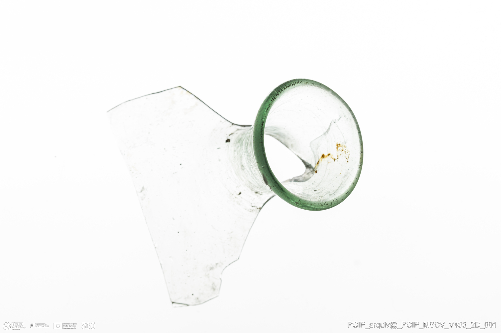 Matéria/Técnica: Vidro; Cronologia: Século XVII; Autoria: Desconhecida; Dimensões: Diâmetro bordo: 24mm.