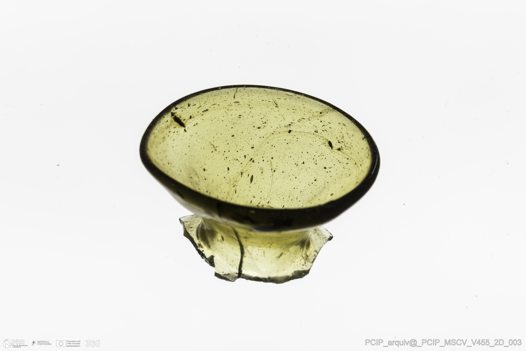Matéria/Técnica: Vidro; Cronologia: Século XVII; Autoria: Desconhecida; Dimensões: Largura: 33mm; Altura: 18mm.