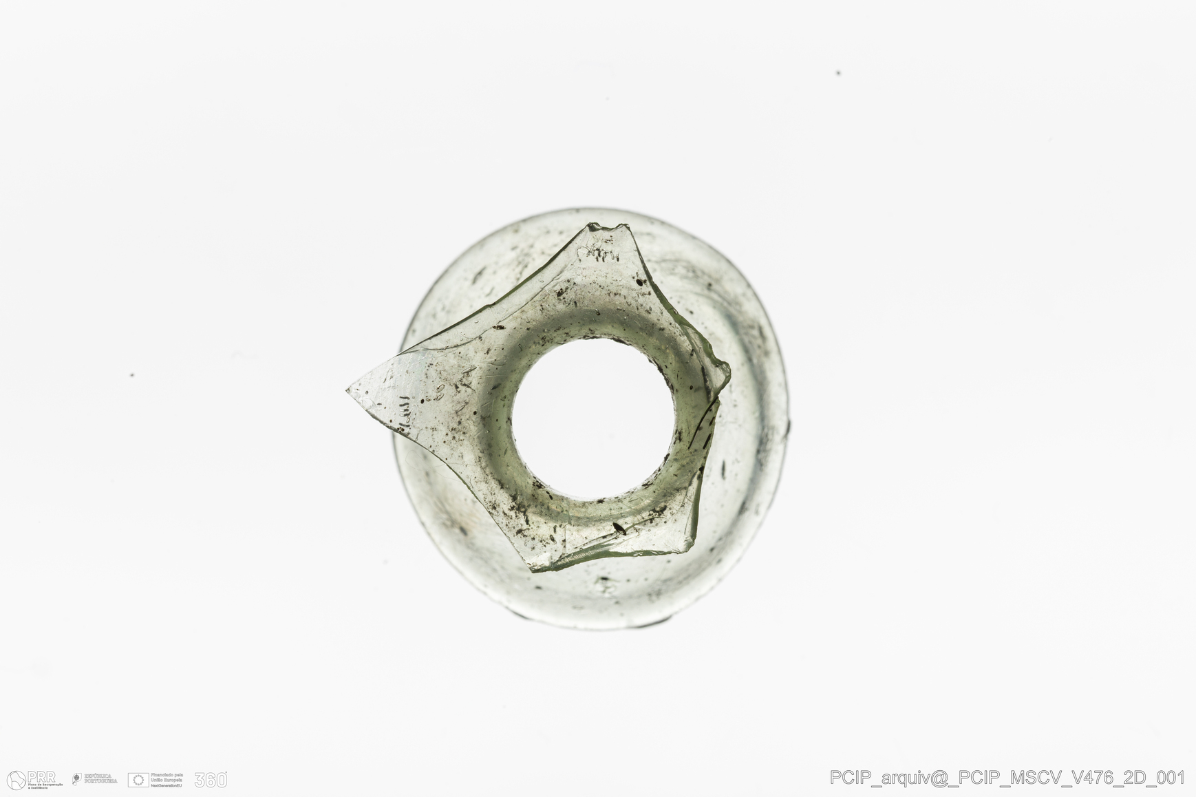 Matéria/Técnica: Vidro; Cronologia: Século XVII; Autoria: Desconhecida; Dimensões: Diâmetro Bordo: 24mm.