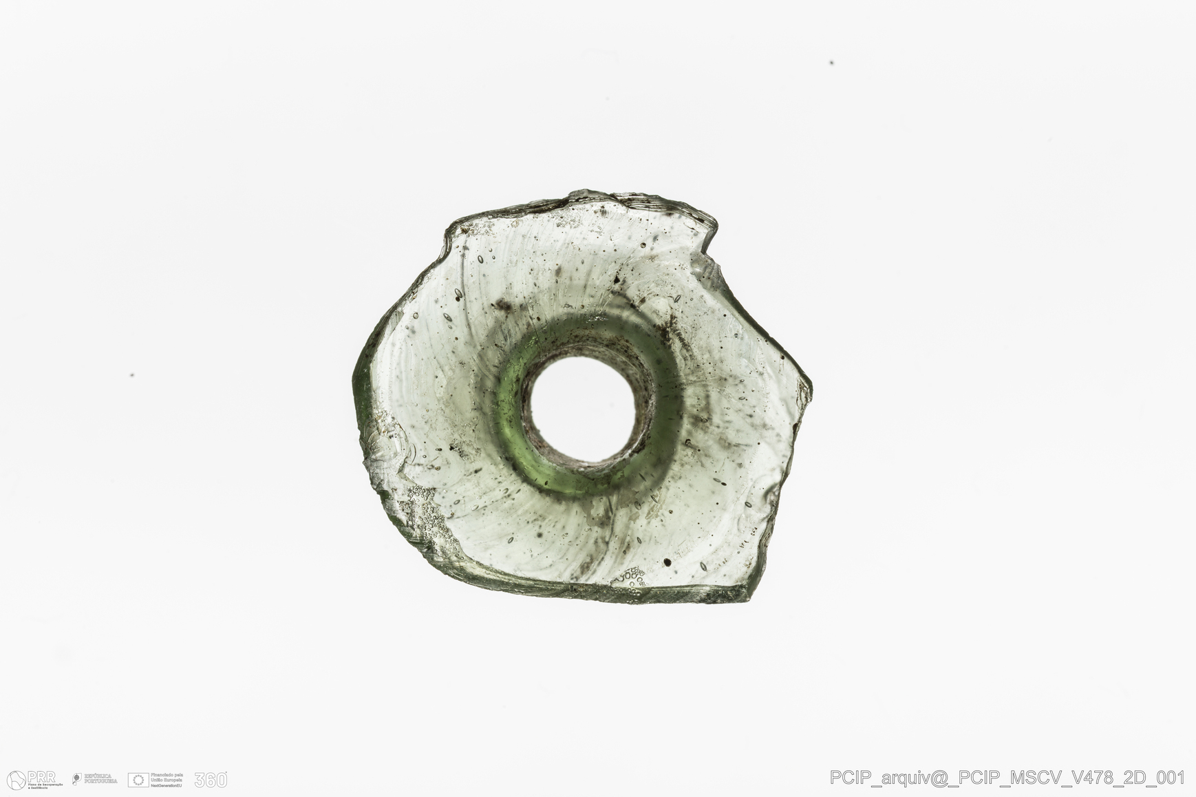 Matéria/Técnica: Vidro; Cronologia: Século XVII; Autoria: Desconhecida; Dimensões: Diâmetro Bordo: 22mm.