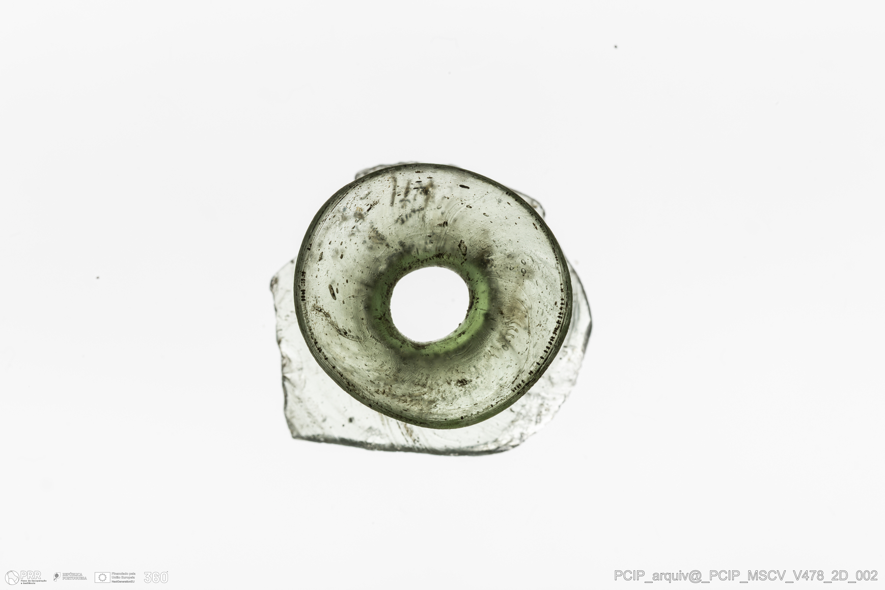 Matéria/Técnica: Vidro; Cronologia: Século XVII; Autoria: Desconhecida; Dimensões: Diâmetro Bordo: 22mm.