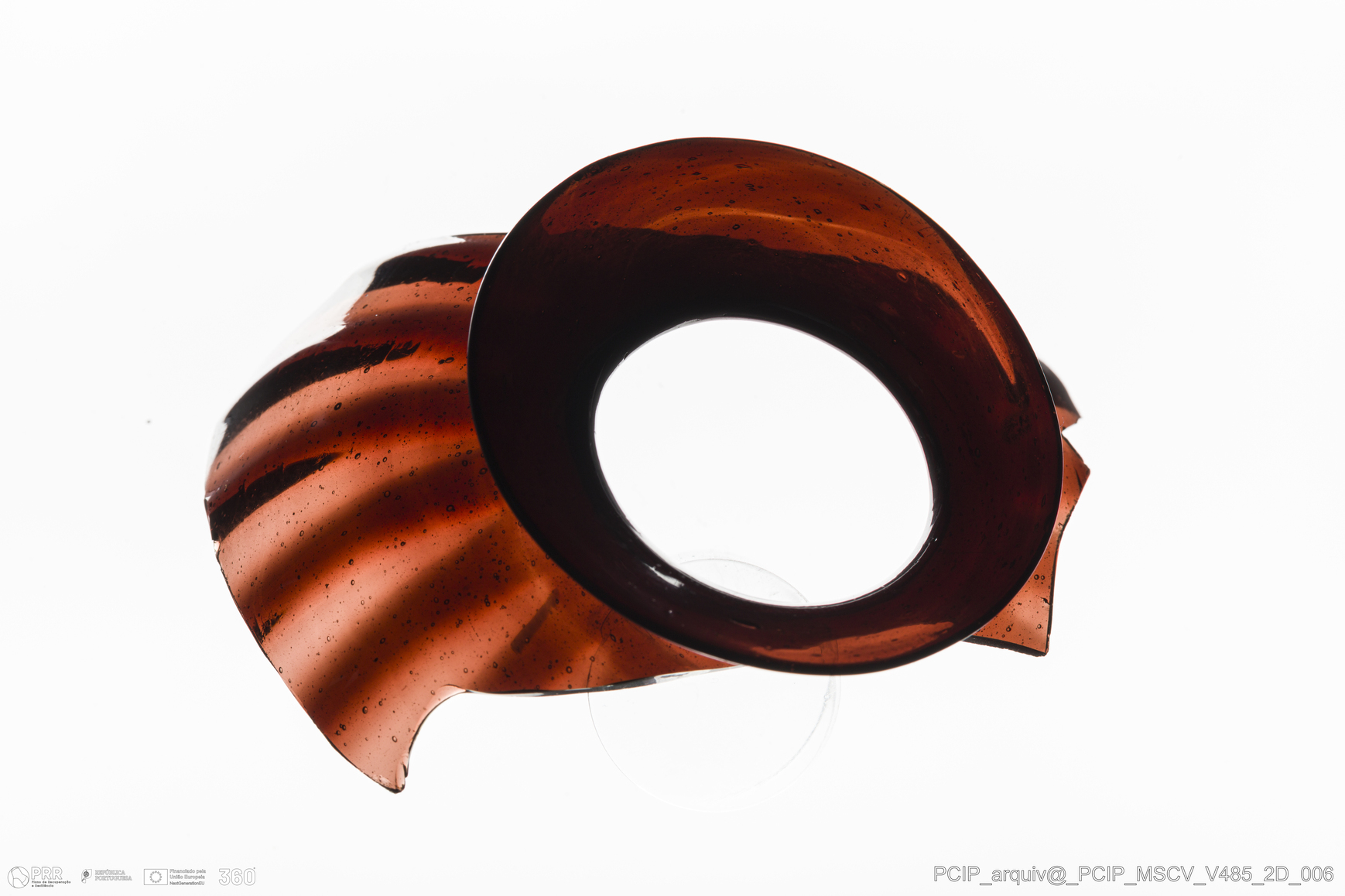 Matéria/Técnica: Vidro; Cronologia: Século XVII; Autoria: Desconhecida; Dimensões: Diâmetro Bordo: 50mm.