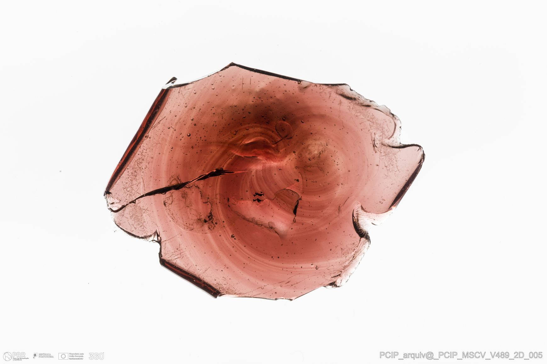 Matéria/Técnica: Vidro; Cronologia: Século XVII; Autoria: Desconhecida; Dimensões: Altura: 42mm; Largura: 80mm.