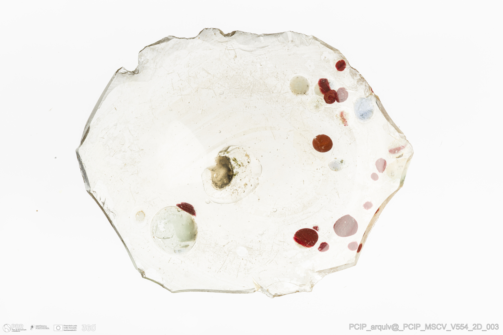 Matéria/Técnica: Vidro; Cronologia: Século XVII; Autoria: Desconhecida; Dimensões: comprimento: 50mm; Largura: 11mm.
