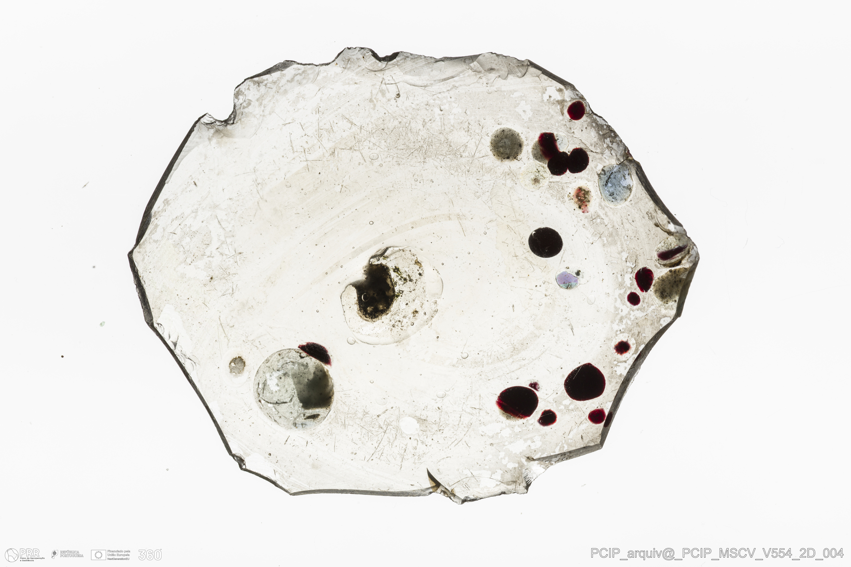 Matéria/Técnica: Vidro; Cronologia: Século XVII; Autoria: Desconhecida; Dimensões: comprimento: 50mm; Largura: 11mm.