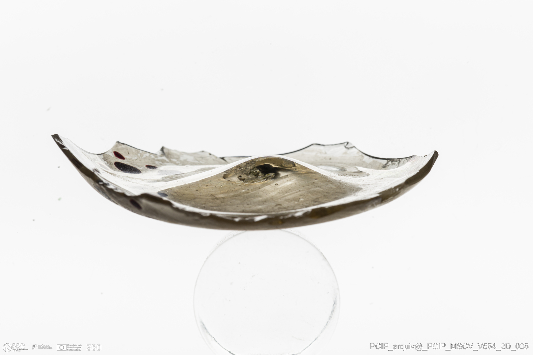 Matéria/Técnica: Vidro; Cronologia: Século XVII; Autoria: Desconhecida; Dimensões: comprimento: 50mm; Largura: 11mm.