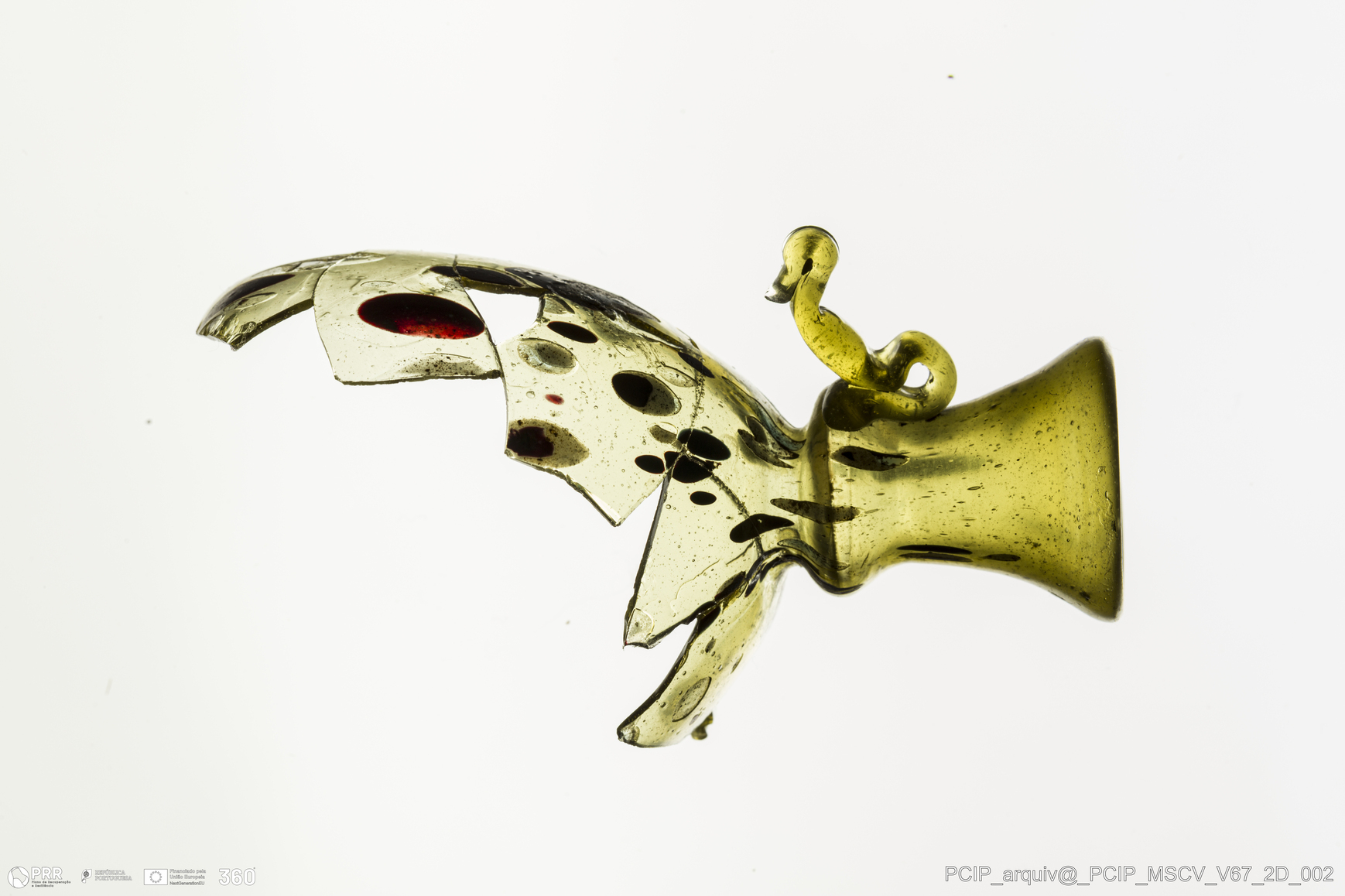 Matéria/Técnica: Vidro; Cronologia: Século XVII; Autoria: Desconhecida; Dimensões: Diâmetro bordo: 25mm.