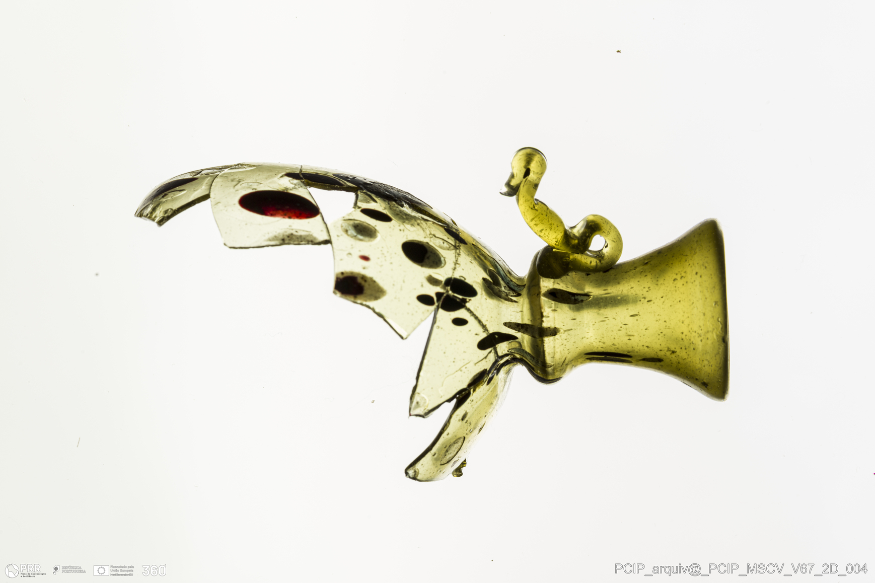 Matéria/Técnica: Vidro; Cronologia: Século XVII; Autoria: Desconhecida; Dimensões: Diâmetro bordo: 25mm.