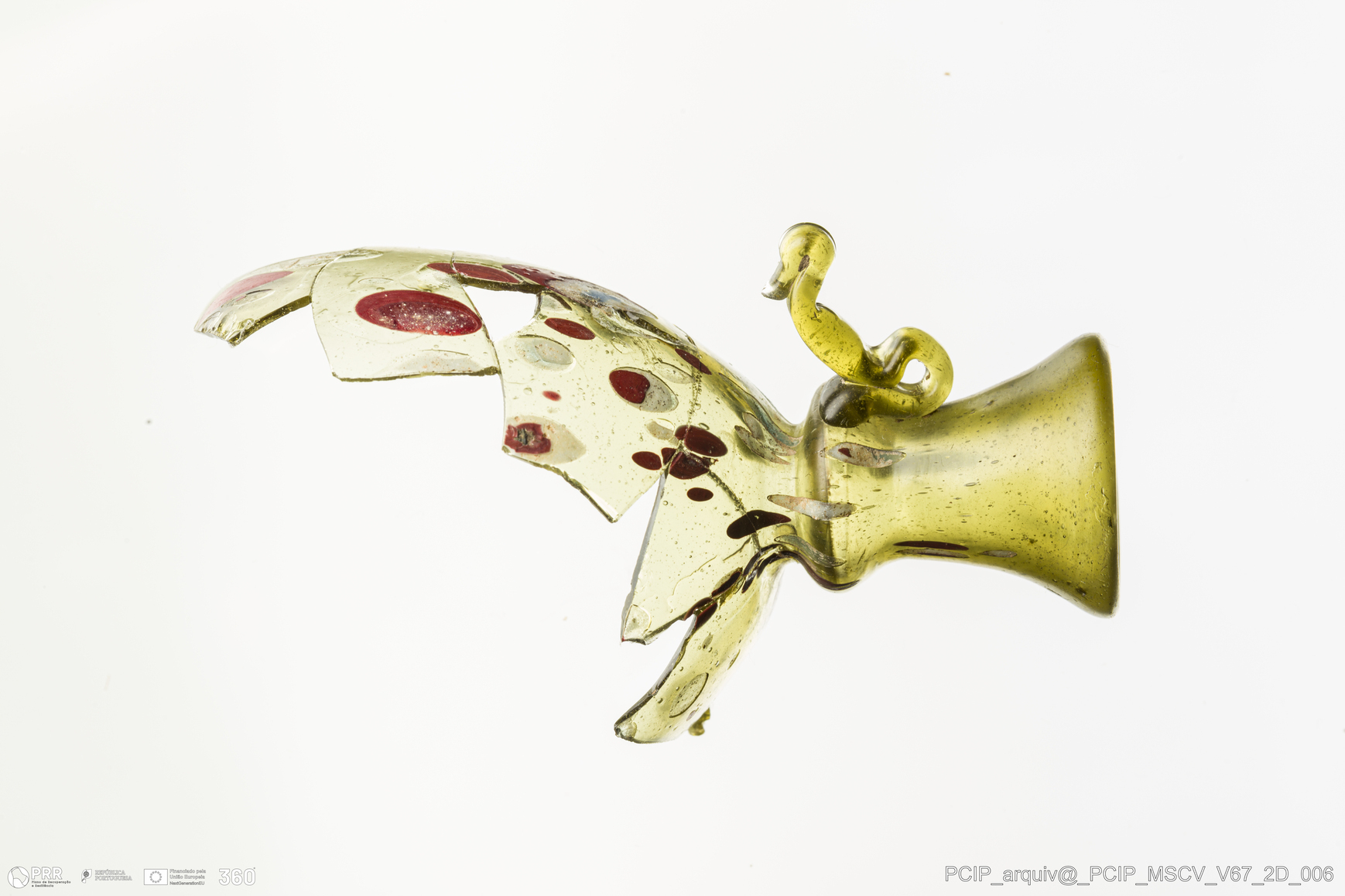 Matéria/Técnica: Vidro; Cronologia: Século XVII; Autoria: Desconhecida; Dimensões: Diâmetro bordo: 25mm.