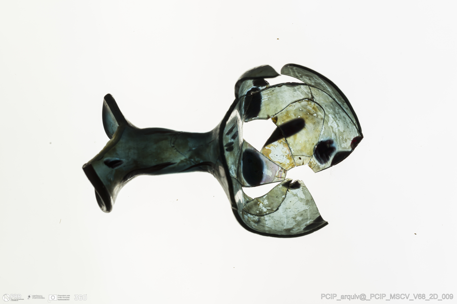 Matéria/Técnica: Vidro; Cronologia: Século XVII; Autoria: Desconhecida; Dimensões: Altura: 80mm; Largura: 35mm.