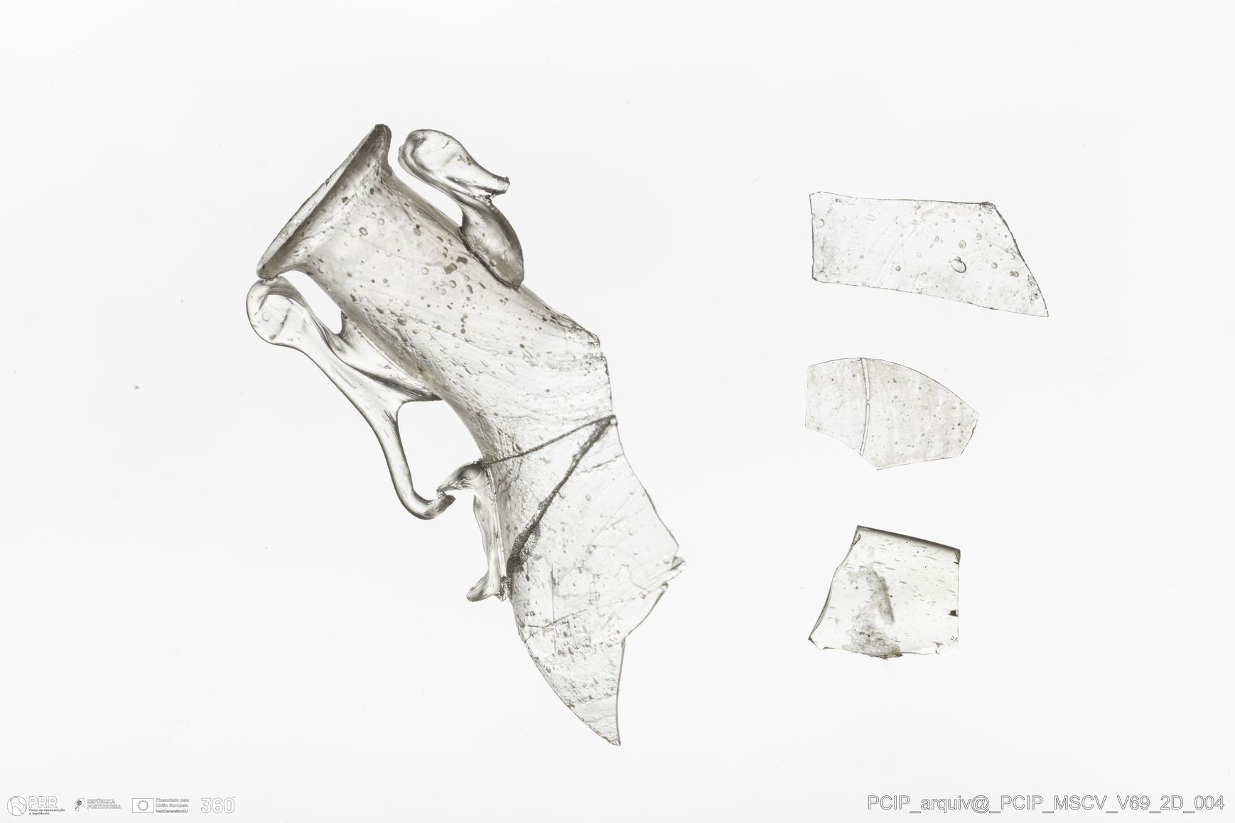 Matéria/Técnica: Vidro; Cronologia: Século XVII; Autoria: Desconhecida; Dimensões: Diâmetro bordo: 18mm.