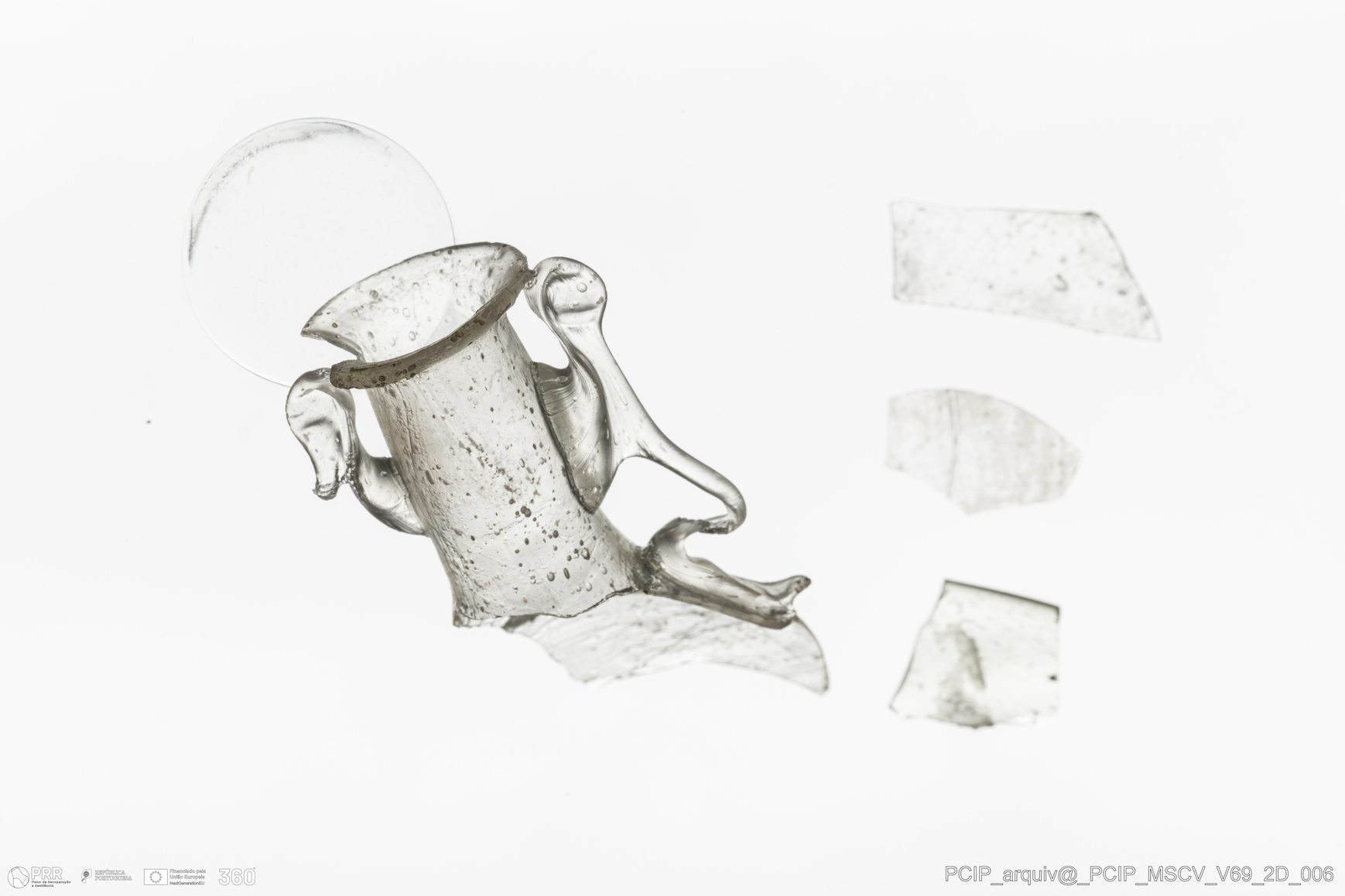 Matéria/Técnica: Vidro; Cronologia: Século XVII; Autoria: Desconhecida; Dimensões: Diâmetro bordo: 18mm.
