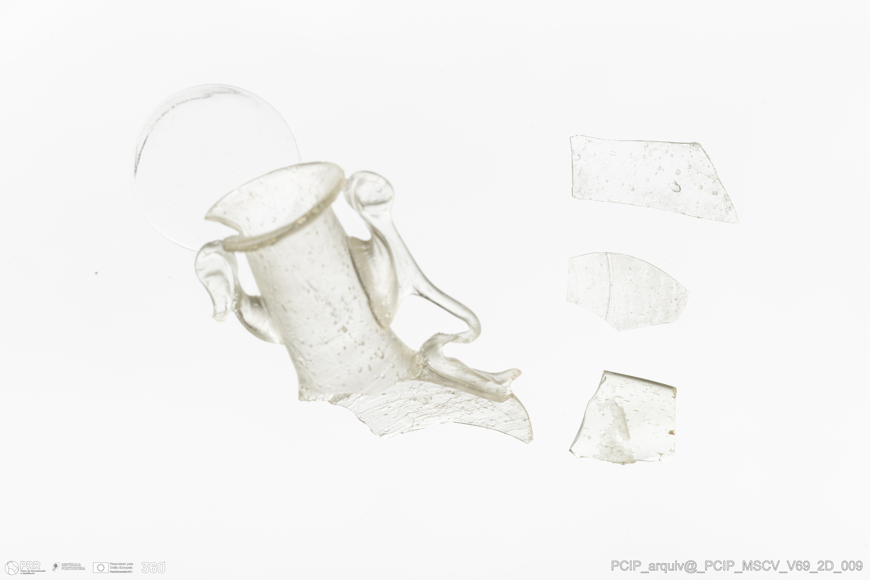 Matéria/Técnica: Vidro; Cronologia: Século XVII; Autoria: Desconhecida; Dimensões: Diâmetro bordo: 18mm.