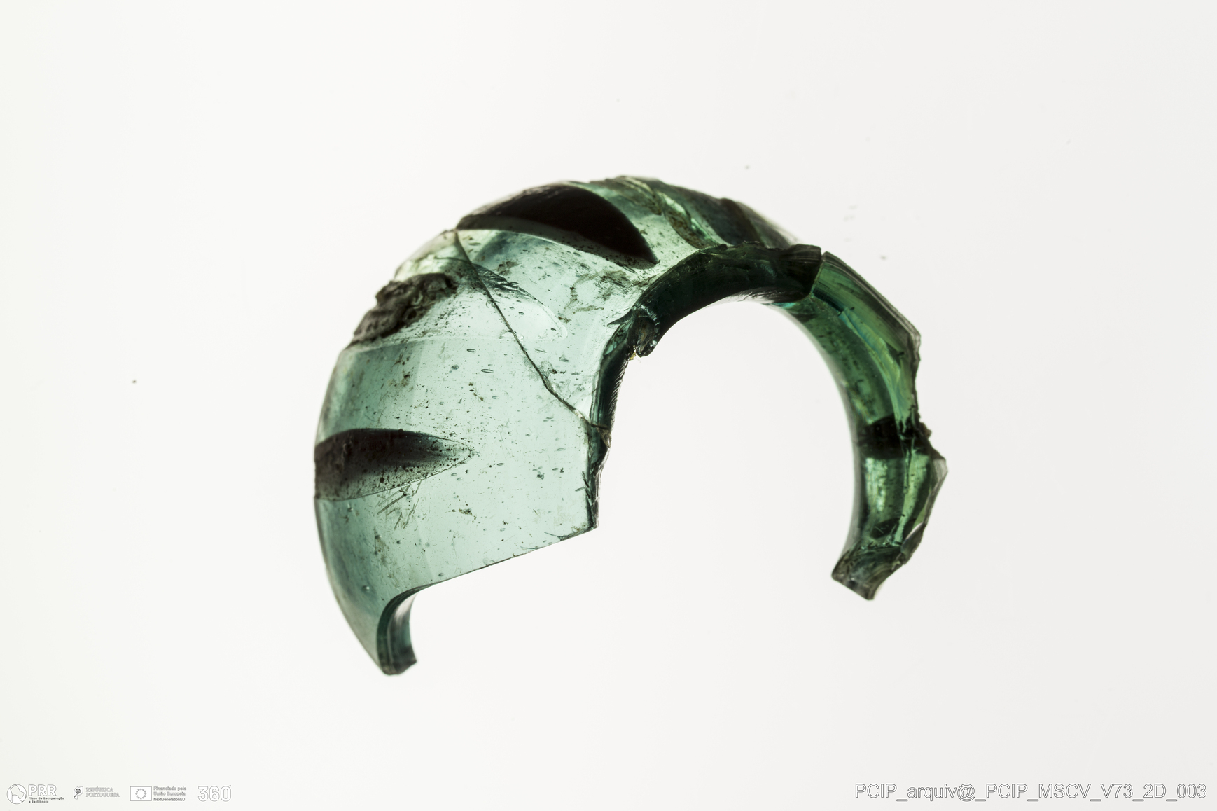 Matéria/Técnica: Vidro; Cronologia: Século XVII; Autoria: Desconhecida; Dimensões: Altura: 20mm; Largura: 31mm.