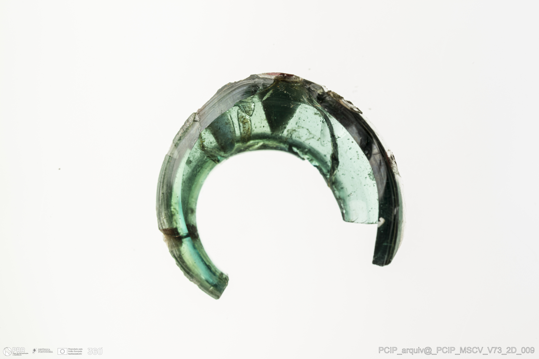 Matéria/Técnica: Vidro; Cronologia: Século XVII; Autoria: Desconhecida; Dimensões: Altura: 20mm; Largura: 31mm.