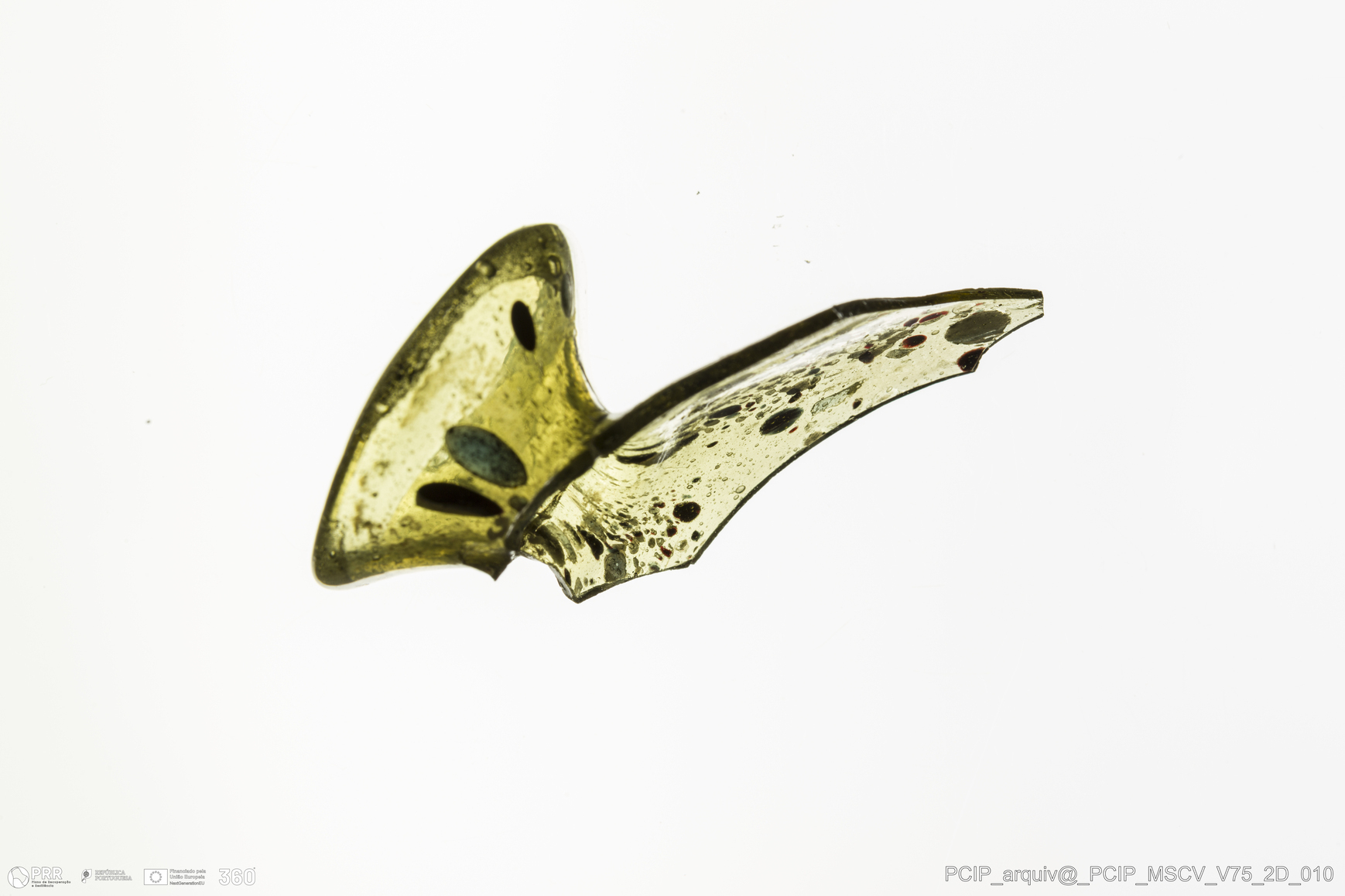Matéria/Técnica: Vidro; Cronologia: Século XVII; Autoria: Desconhecida; Dimensões: Diâmetro bordo: 25mm.