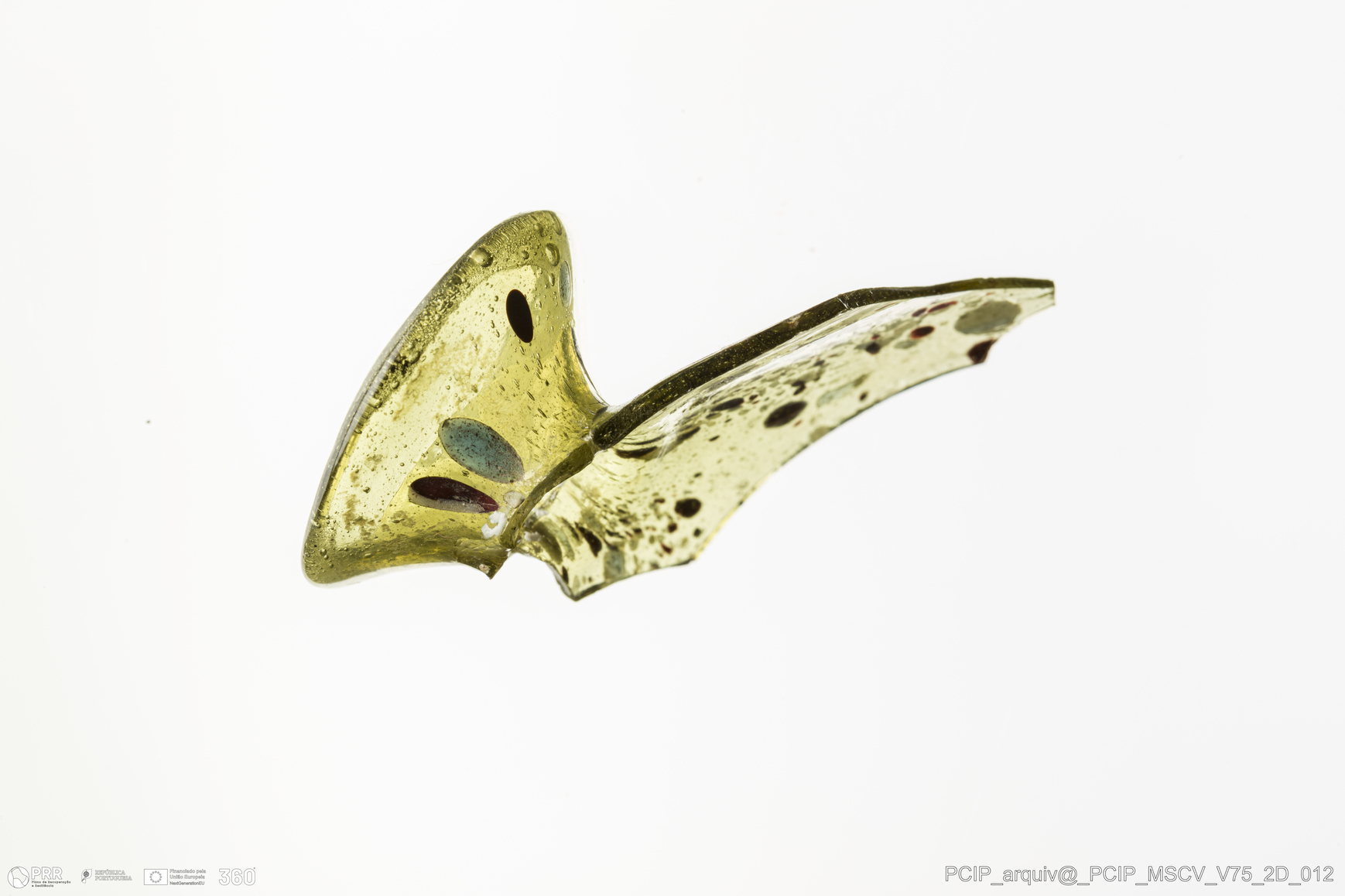 Matéria/Técnica: Vidro; Cronologia: Século XVII; Autoria: Desconhecida; Dimensões: Diâmetro bordo: 25mm.