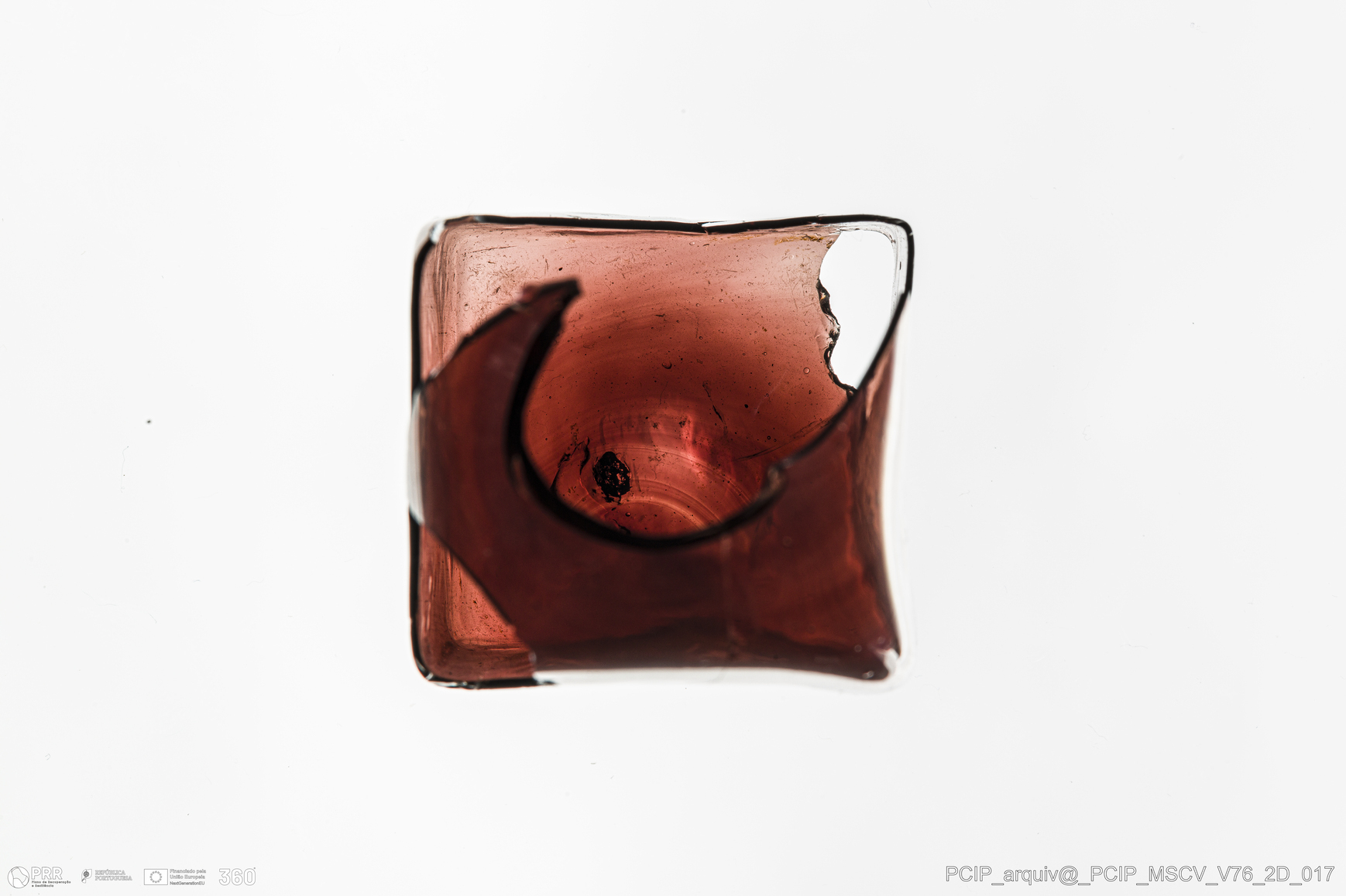 Matéria/Técnica: Vidro; Cronologia: Século XVII; Autoria: Desconhecida; Dimensões: Altura: 76,5mm; Largura: 42mm.
