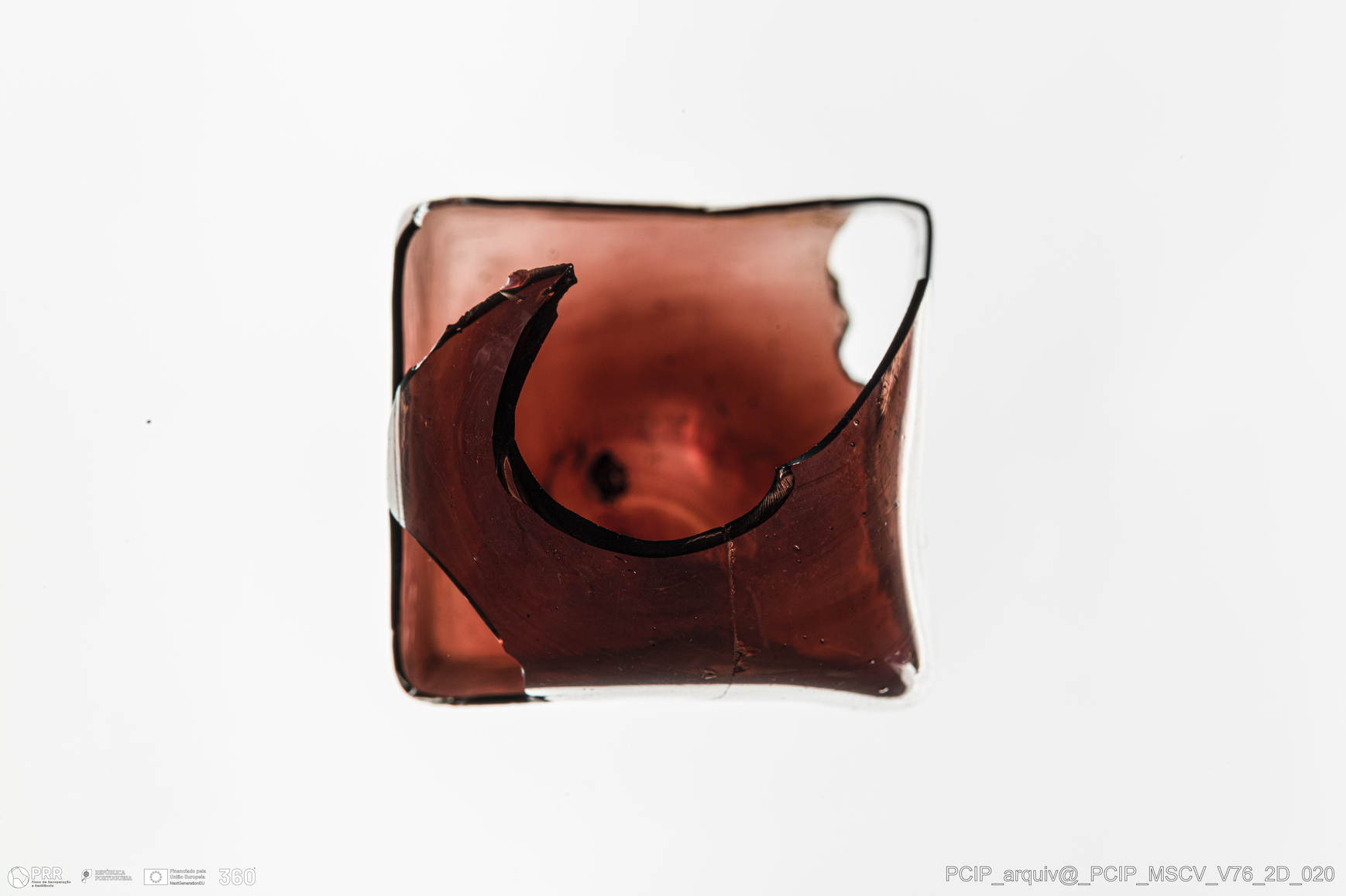 Matéria/Técnica: Vidro; Cronologia: Século XVII; Autoria: Desconhecida; Dimensões: Altura: 76,5mm; Largura: 42mm.