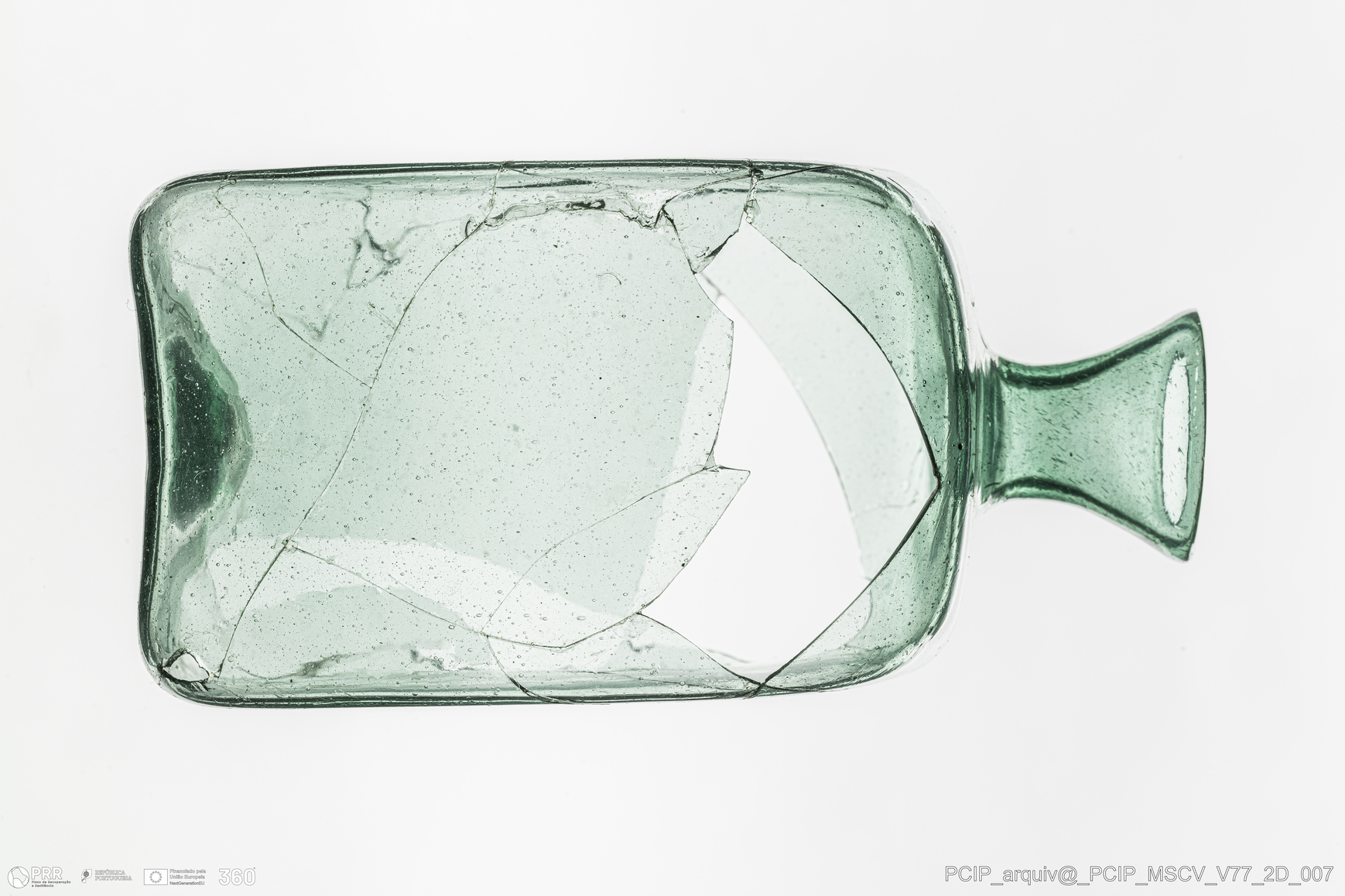 Matéria/Técnica: Vidro; Cronologia: Século XVII; Autoria: Desconhecida; Dimensões: Diâmetro bordo: 30mm; Altura: 120mm.