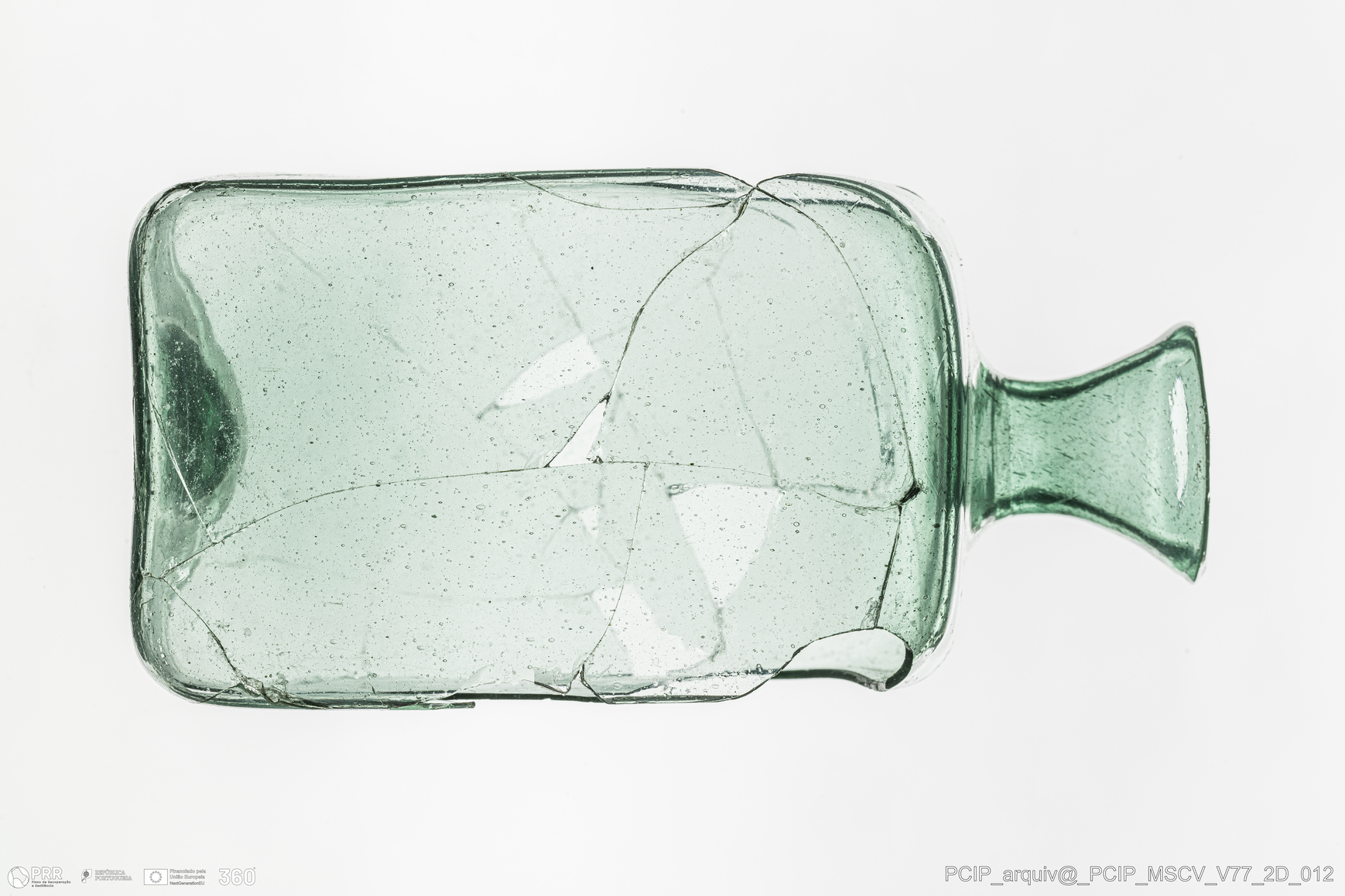 Matéria/Técnica: Vidro; Cronologia: Século XVII; Autoria: Desconhecida; Dimensões: Diâmetro bordo: 30mm; Altura: 120mm.